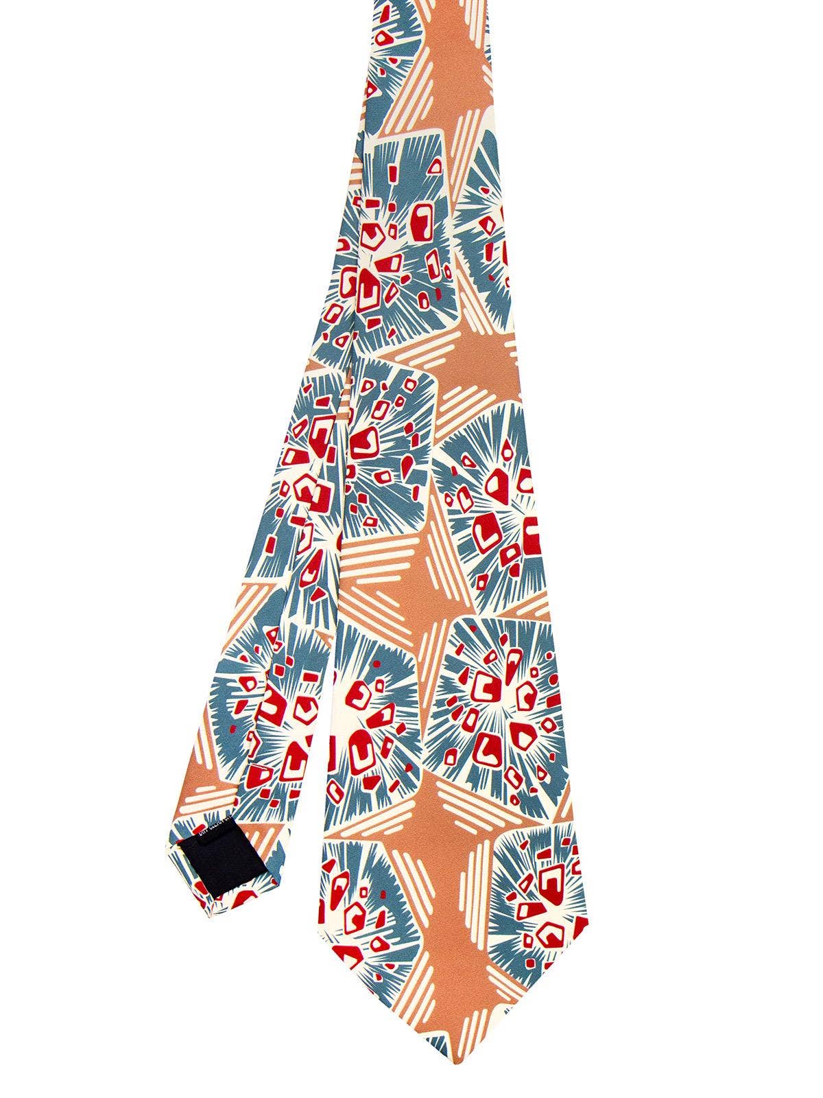 Square, saw, triangle & sine wave stripe print men's tie. Did you think we'd just make a plain ol' geometric striped tie? Of course not! This is for all you electronic music lovers and tinkerers of all things that go bleep and bloop. • Pattern: Screen printed sound waves • Fabric: 100% silk