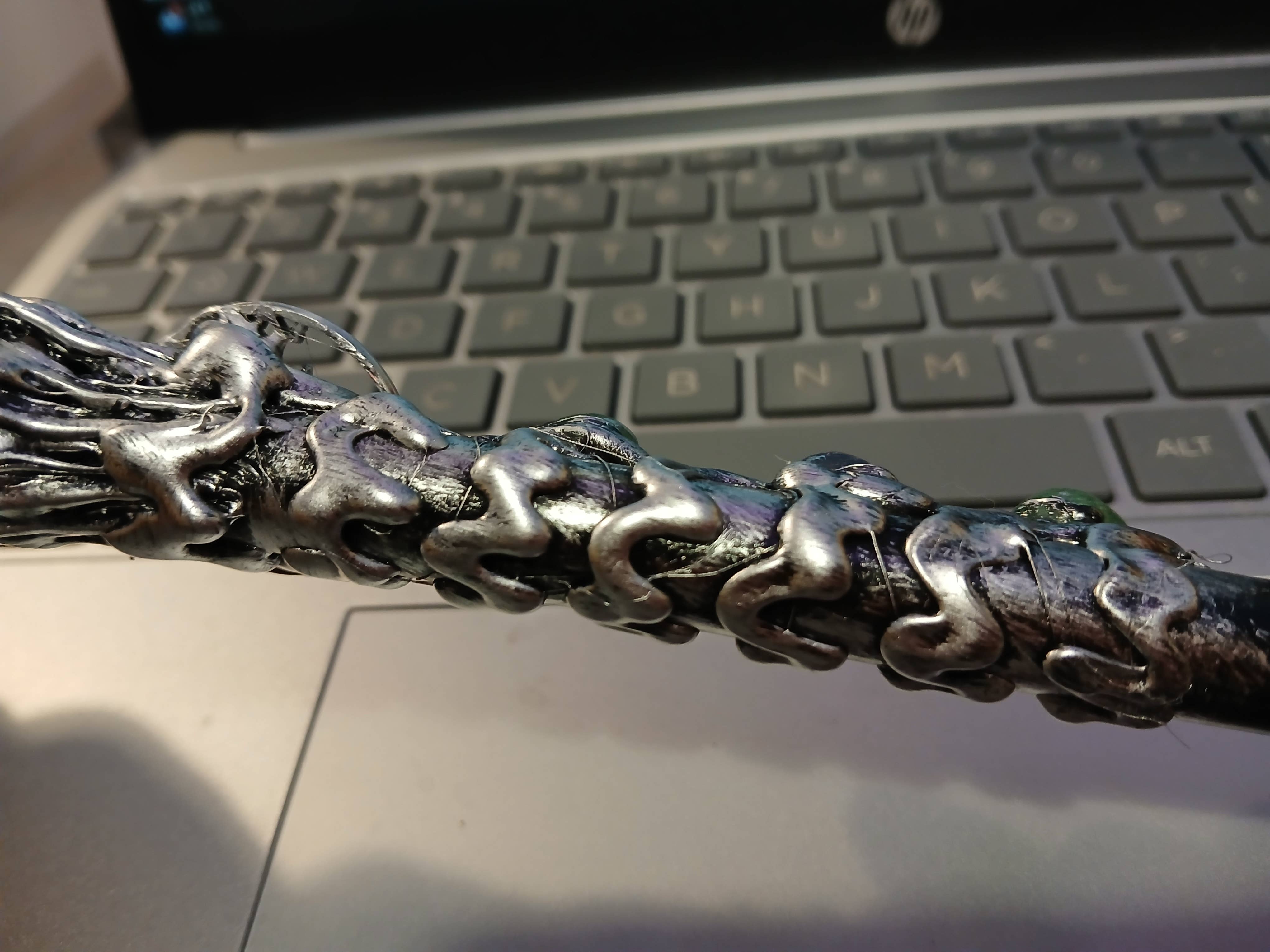 Wand has hair like strands covering it and the material used melts in my hand when held. The rocks used are quite nice though