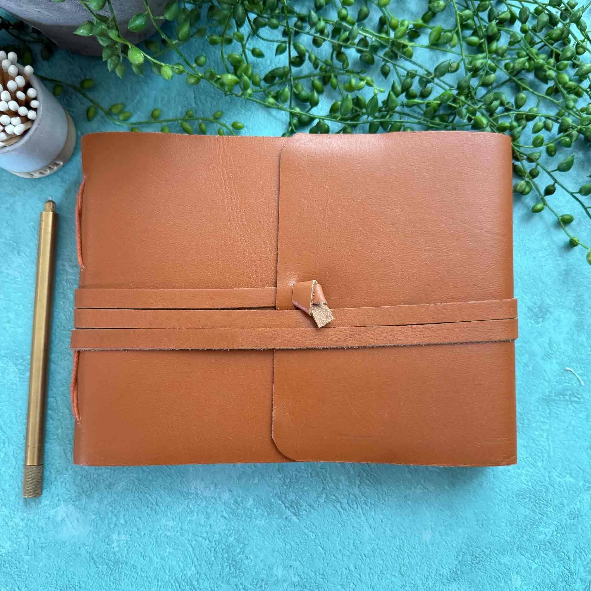 A5 Landscape Handmade Leather Notebook - Dark Brown Lovingly made from real leather and recycled cotton rag paper, this charming handmade notebook is a delightful treat for you or someone you adore. Every detail is thoughtfully crafted, making it a special companion for all your doodles and scribbles. Measuring appx. A5 in size (22cm x 16.5cm), it consists of 100 pages (200 sides) of environmentally-friendly, handcrafted cotton paper. As an extra special touch, each one of these beautiful little notebooks comes with it's own branded gift bag. This beautiful notebook is perfect as an artists companion or for journalling. It can also be used as a notebook, diary, guest book and more. A rich Brown Colour