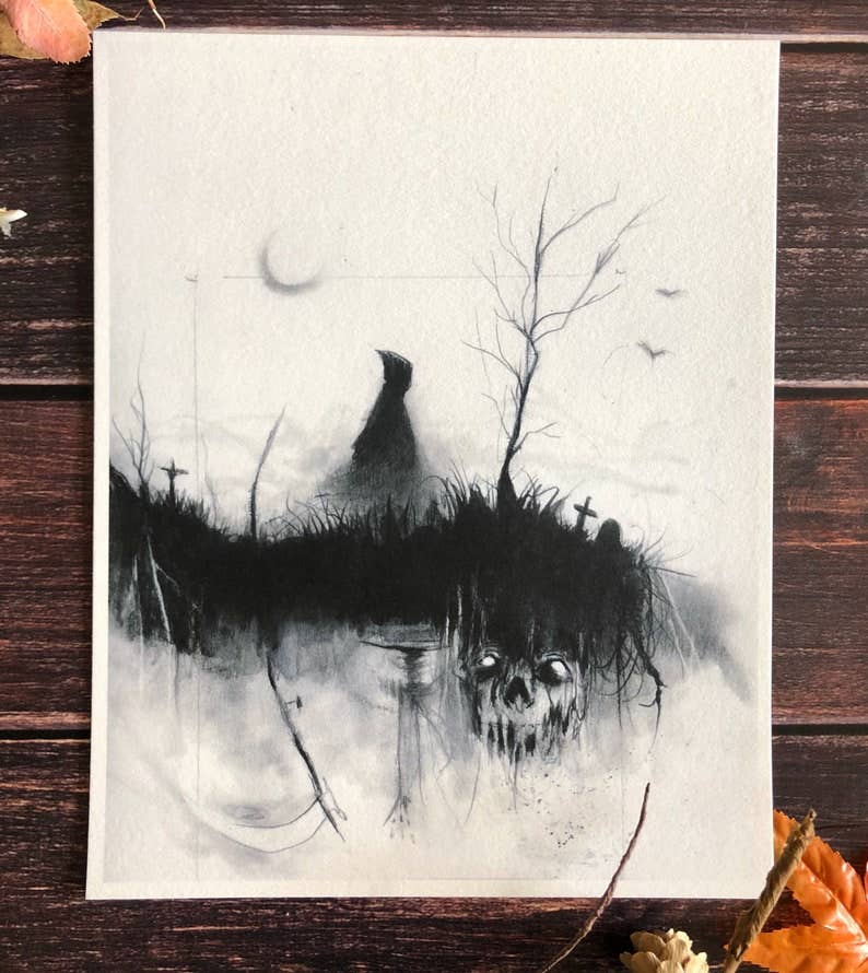Frankenstein's Monster For fans of Gothic, Horror, and dark artwork 8x10" US inches printed on 120lb cold press. Signed on back Ships in a flat protective sleeve All prints are of artwork originally hand drawn by Andy Sciazko, illustrator of the Nightmare Soup book series