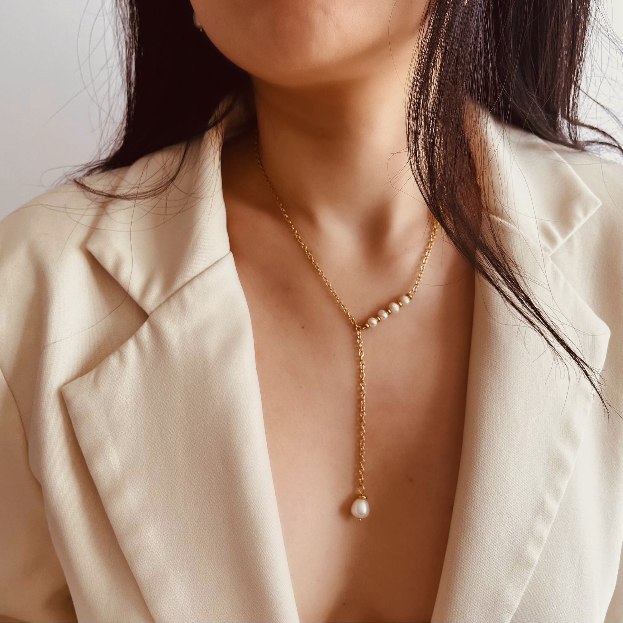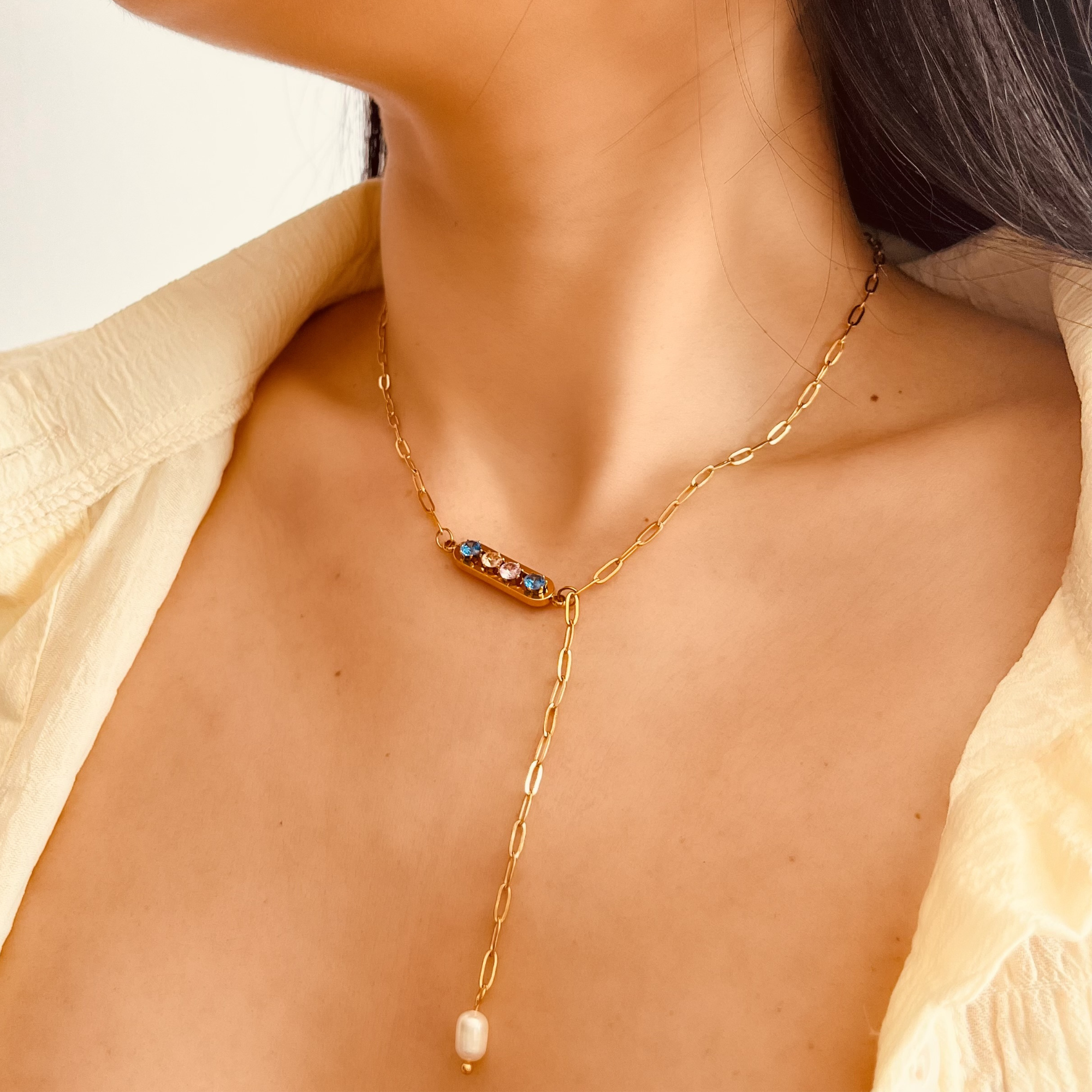 • Meticulously handcrafted from Premium Stainless Steel • Adorned with an enduring 18K Gold finish for sustained allure • Resistant to water - Non Tarnish • Chain length adjustable from 16' to 18' SKIN-FRIENDLY: Free from nickel to ensure maximum safety, even for the most sensitive skin types. NEED ASSISTANCE? Questions about your choice? Don't hesitate to reach out; our team is here to assist you promptly. Due to the natural variation in pearls, each necklace boasts its own unique charm.