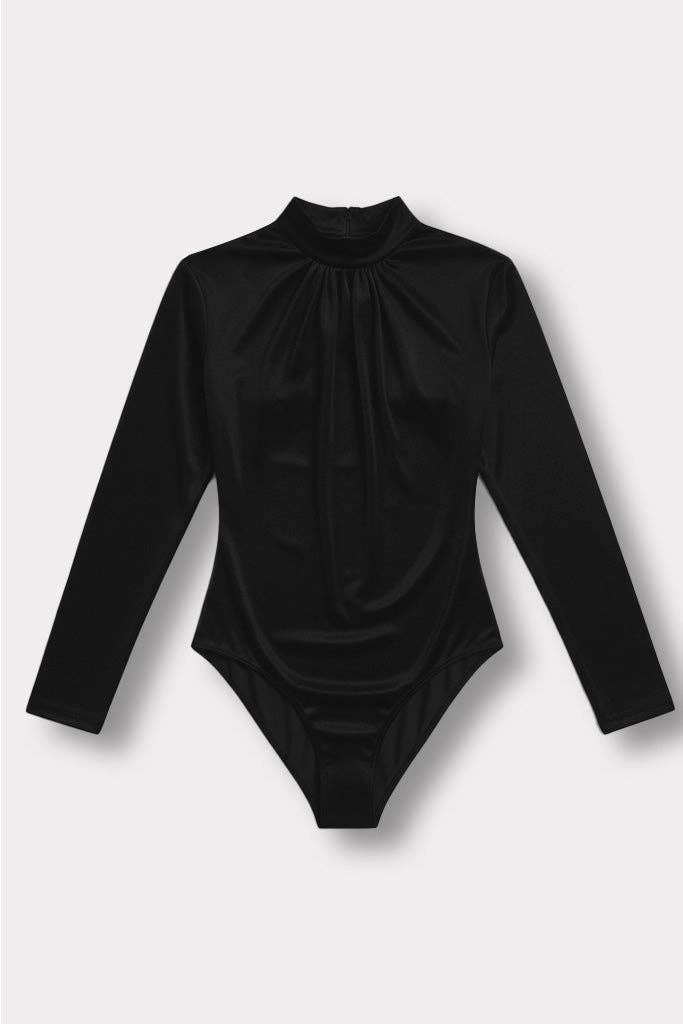 - Double Layered - Mock Neck - Bodysuit - Solid - Short Sleeve - 96% Polyester, 4% Spandex - Imported. Designed in USA.