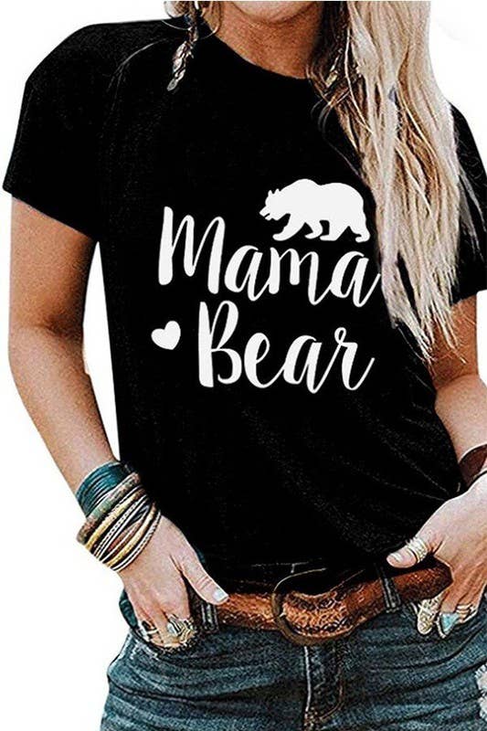 MAMA BEAR Printed Round Neck Short Sleeve T-Shirt