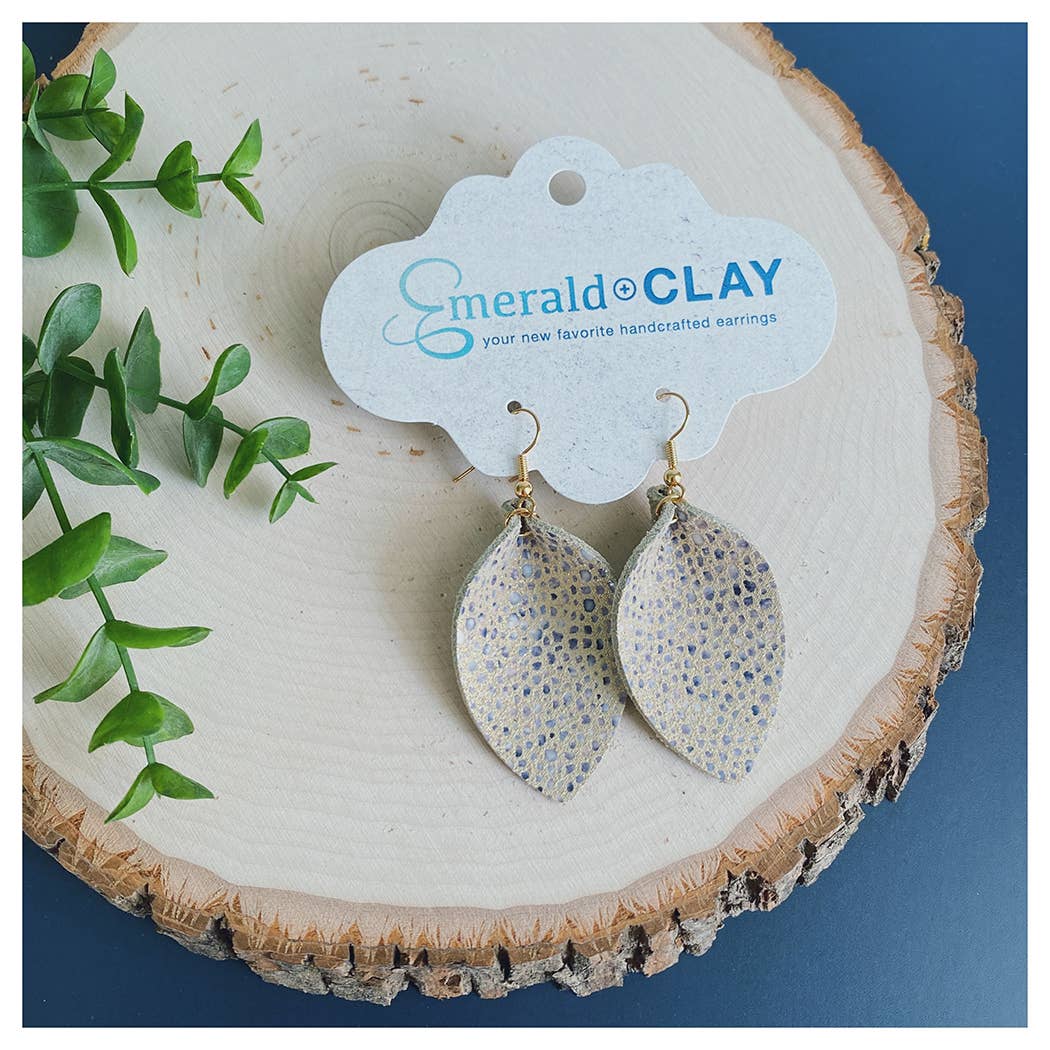 Handcrafted, leather earrings with nickel free ear wires. • Lightweight • Size: ≈ 3" long x 1.6" wide