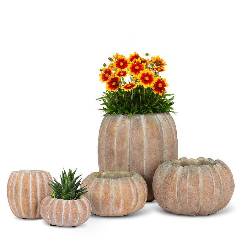 Add a delightfully spooky touch to your decor with this life-like Large Skull Planter. Crafted out of cement, this grey planter is sculpted with lots of rich texture and detail for a fun and frightful complement to the brightest of flowers or blooms. Also available in a smaller size.
