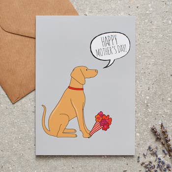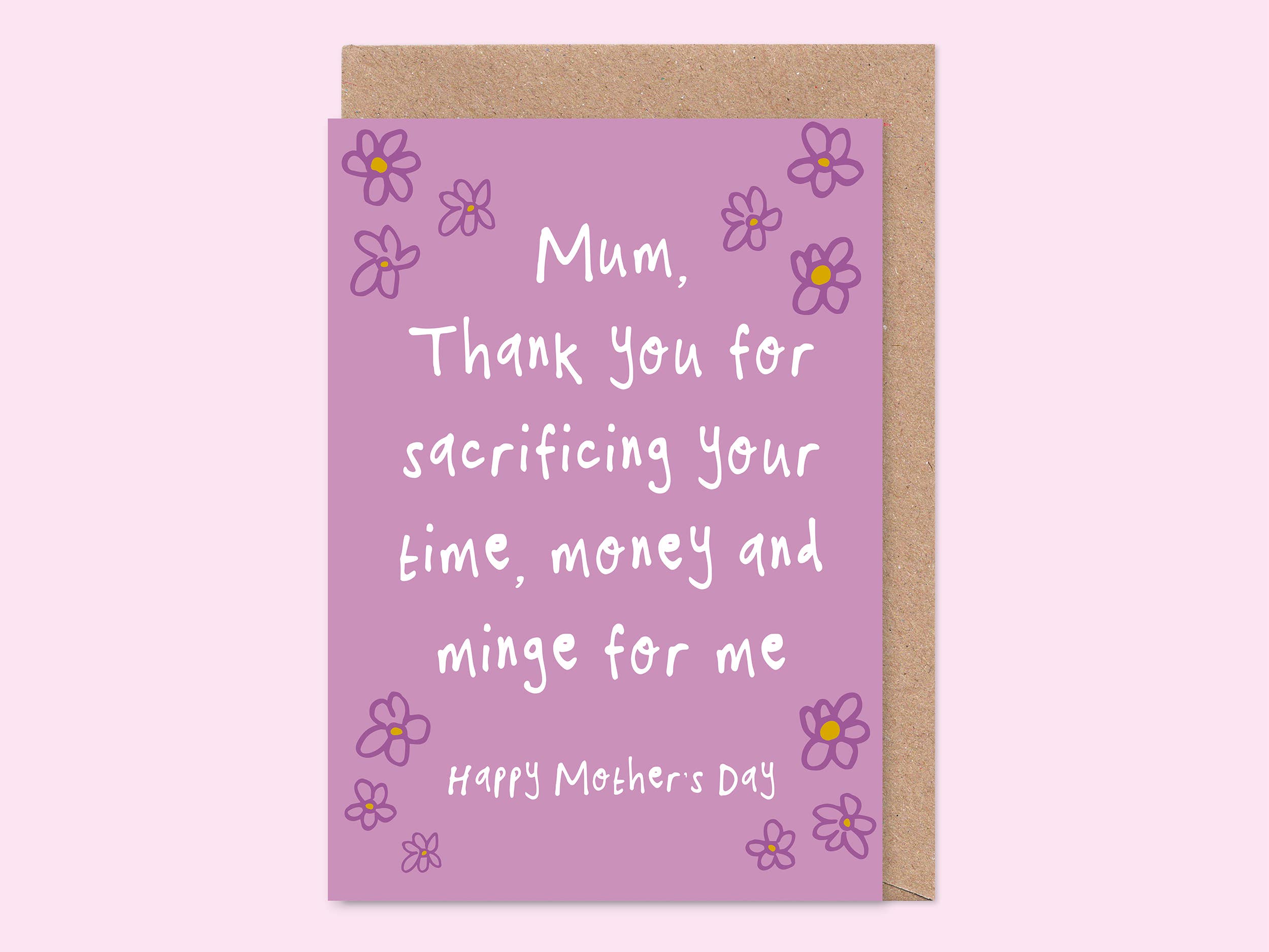 A funny Mother’s Day card featuring a kid reluctantly bringing breakfast in bed