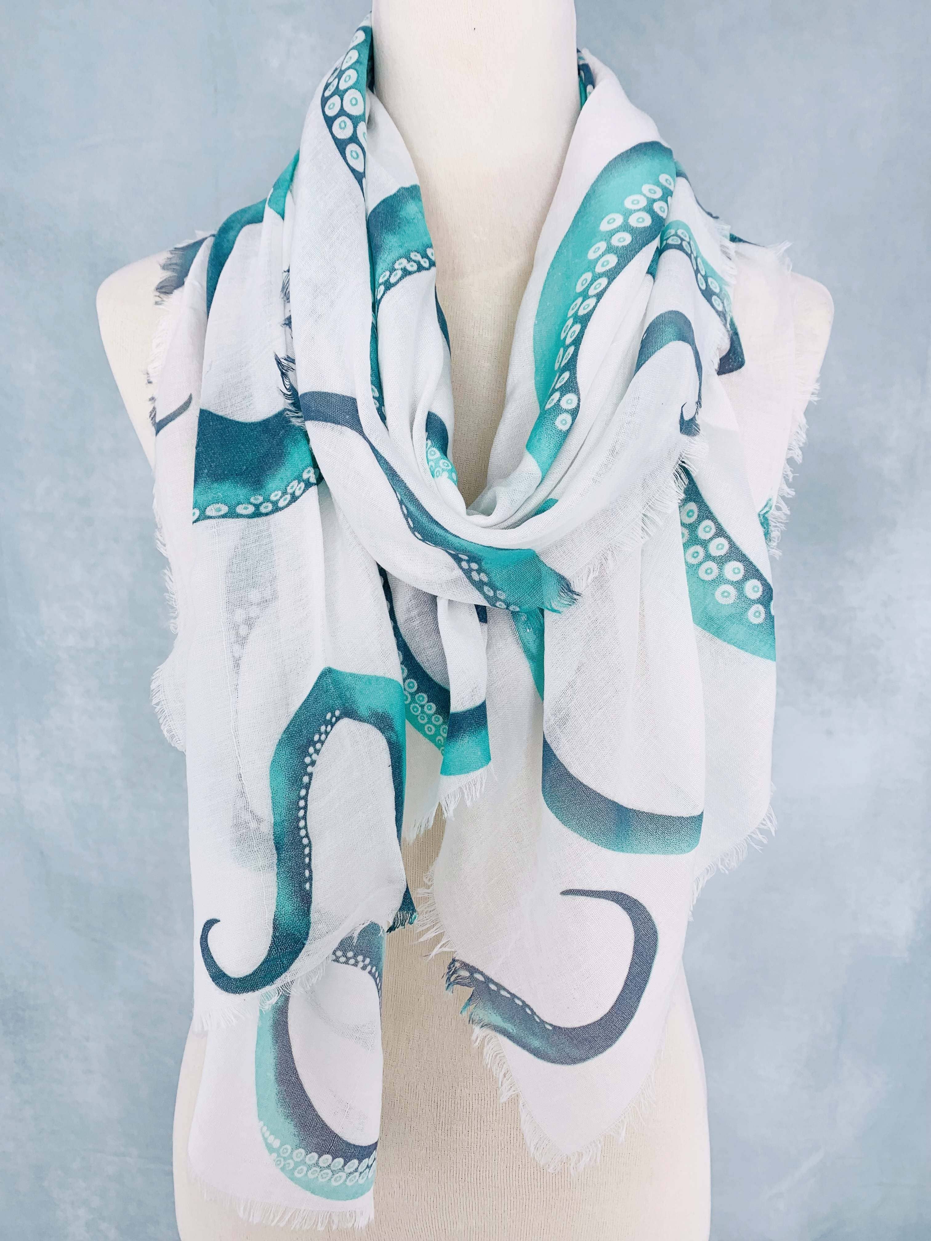 JC021060 Oversized White Sea Life Scarf/Shawl