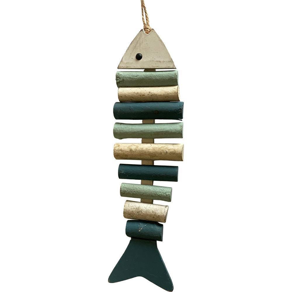 Handcrafted fused glass bonefish. Mobile or sun catcher. Art glass decor for home or garden. Each piece is hand cut from fusible stained glass, cold worked, then goes through multiple firings in a glass kiln. Strung on insulted wire with recycled wine corks.Beautiful indoors or sheltered area of your outdoor space. Each design is hand cut and slight variations will occur. Proven bestseller since 1997.. Featured in Coastal Living Magazine! Approximately 16”x7” Great gift for all !