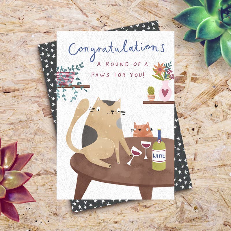Greetings Card Dimensions: 114mm x 162mm Finish: Finish Free A cute collection of cards featuring illustrations by Kelsey Collings - purrrrfect for all those cat lovers. These cards showcase a menagerie of quirky hand drawn felines, bursting with personality and playfulness. Designed and printed in the UK onto luxury sustainable FSC board and supplied with a bespoke black & white star patterned envelope. The cards are 114mm x 162mm. A premium quality card produced by Dandelion Stationery. PLEASE NOTE: All of our greetings cards are packaged plastic-free as standard (ie no individual card cello wrappers). Envelopes are nested inside the card. If you require your cards to be in individual cello-wrappers we are happy to offer this service free of charge, but please message us to let us know immediately as you place your order – we will then confirm receipt of any messages received. Any delay in you messaging us about this could result in your order being dispatched as plastic-free.