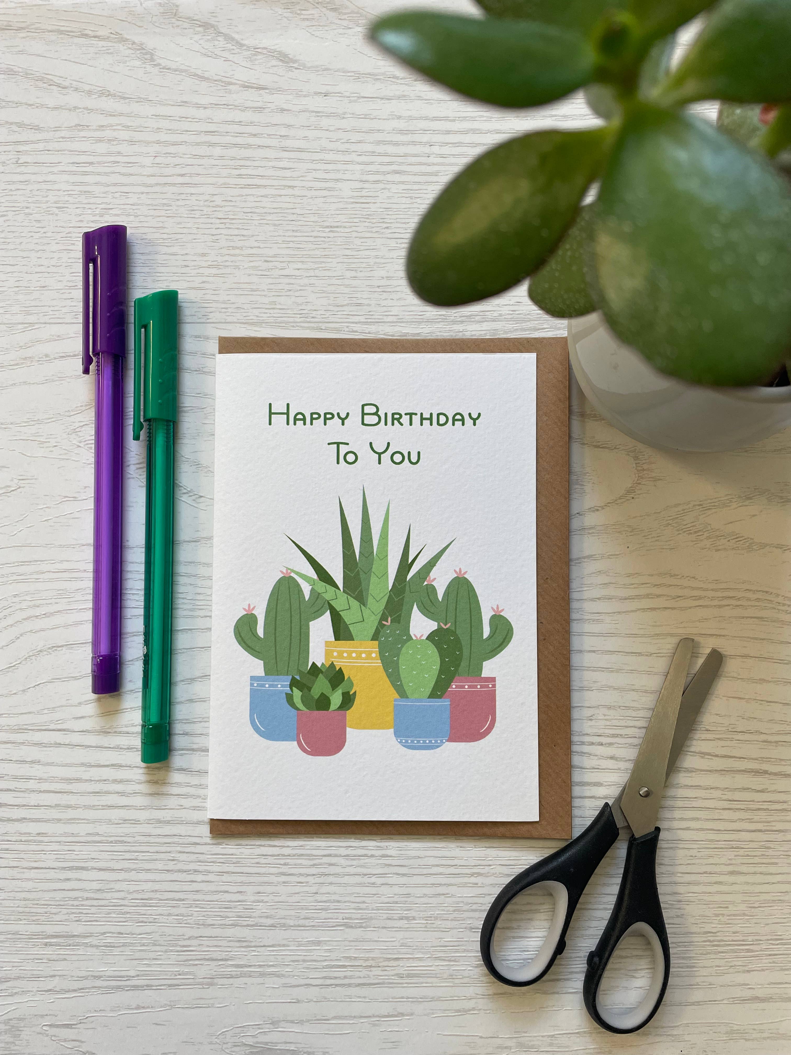 Hand-painted touches of sparkling glitter have been added to accent the birthday greeting card. "Happy Birthday" is printed on the front of the 5" x 7" card. This card is made in the USA with environmentally-friendly materials. It comes pre-packaged with a white envelope, which requires standard postage to send. The inside is blank, leaving room for a custom message or photograph.