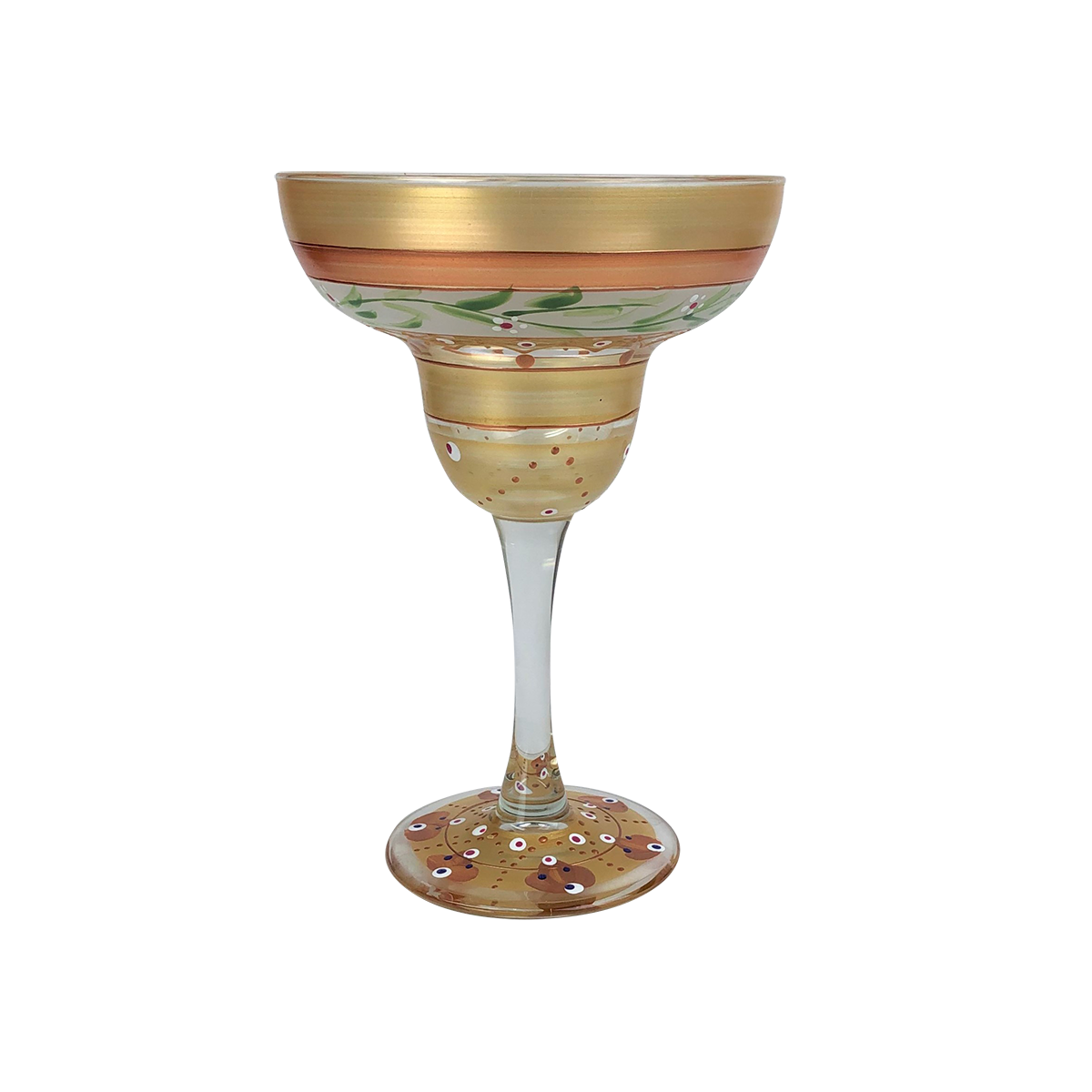 A 12 oz hand painted margarita glass. Proudly hand painted in the USA! Minimum Order Qty: 2