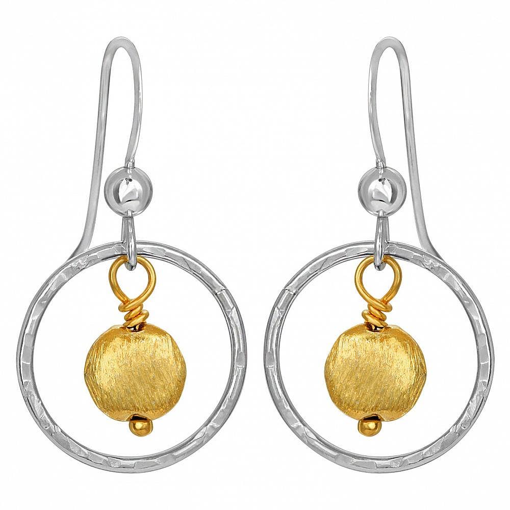 Two-Tone Hammered Drop Earrings - Gold/Silver