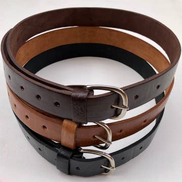 1 1/2in width. Sizes - Small (30in - 32in), Medium (34in - 36in), and Large (38in - 42in).