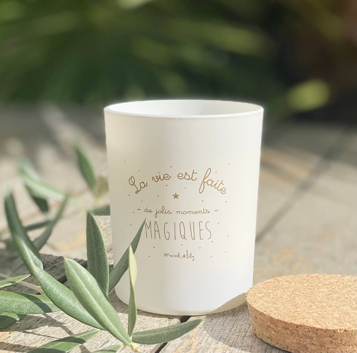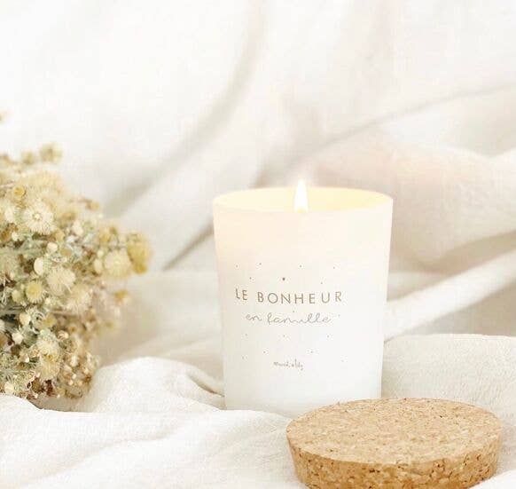 Eco-friendly artisanal candle, 100% plant-based "Des amoureux" with the warm and captivating scent of amber and vanilla, made in France by our master candle maker following traditional methods. Not tested on animals and compliant with EU regulations. Your pleasant-smelling candle has been poured into a white lacquered glass, hand-screened in the pure tradition with non-GMO and pesticide-free soy and sunflower vegetable wax, offering high-quality diffusion with a 100% cotton wick, free of lead and tin, for a healthy and natural burn. The fragrances developed in Grasse are concentrated between 8 and 10% and incorporated into the wax mass during manufacturing. The 100% ecological cork lid was made in the Southwest of France. Burn time: approximately 40 hours. Weight: 140 g Candle, fragrance, gourmet candle, scented candle, spa, artisanal candle, candle, perfume, gifts, gift, decor, home