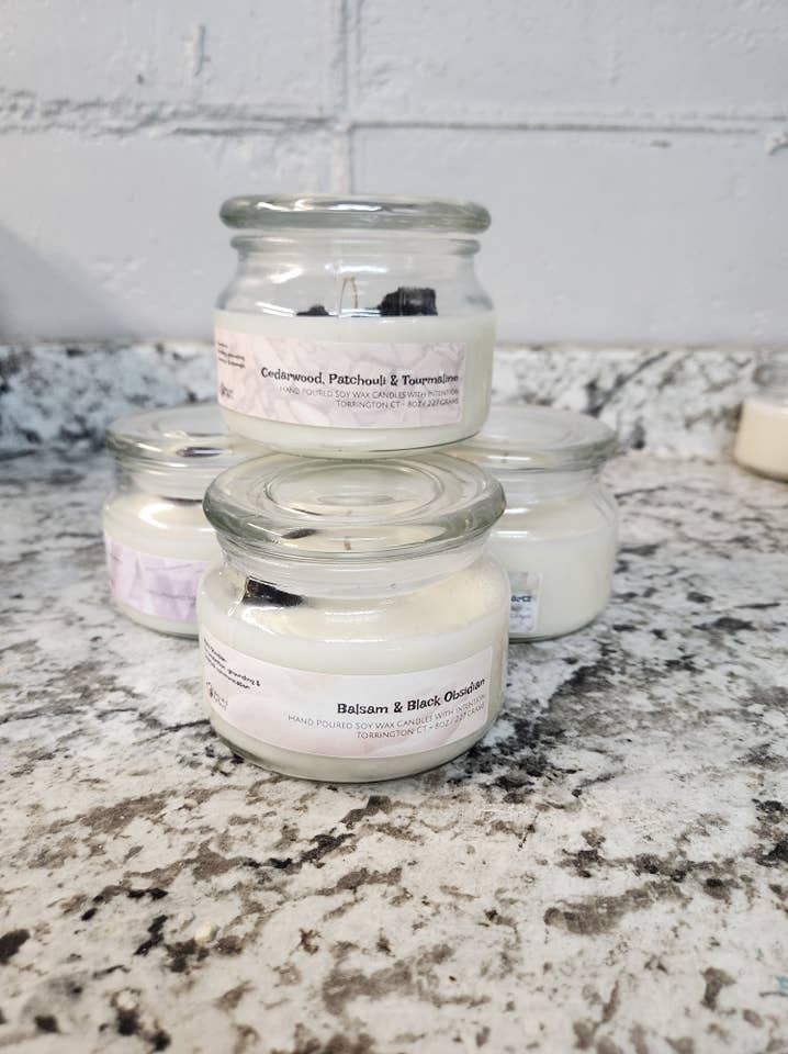 Each hand-poured candle is carefully crafted with 100% soy wax and cotton wicks. Each candle is highly scented and will last approximately 140+ hours. There are over 50 scent options available and custom scents are available if you do not see an offering you are interested in.