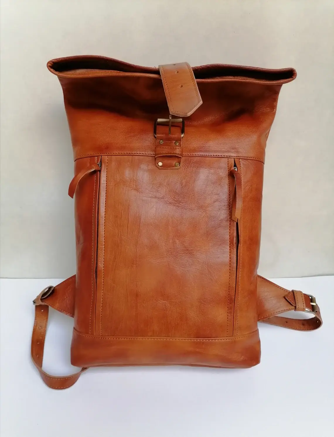 Crafted from sturdy palm leaf and adorned with stylish leather straps and metal buckles, this backpack is ideal as a unique gift for the holidays. Whether you're exploring the city, heading to the market, or embracing the spirit of Christmas, this backpack has got you covered. 🎁 Rest assured, this hand woven palm leaf basket can withstand a bit of rain, just make sure to let it dry thoroughly in the sun. Please note that the slightly uneven edge on the top of the basket is intentional and adds to its unique charm. Dimensions: 14"h x 18"l SKU: MMB2
