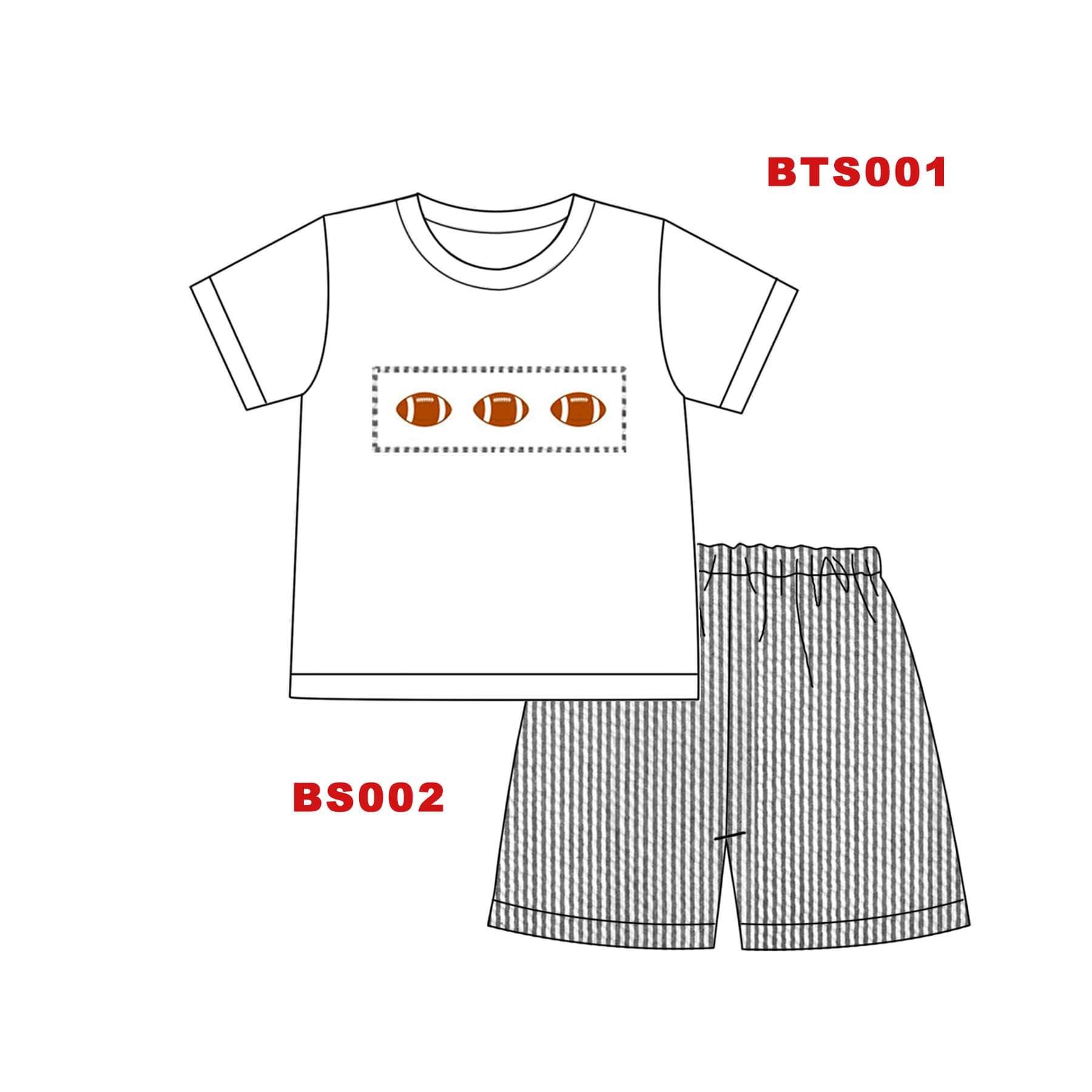 Cheer on your favorite team with this collegiate inspired seersucker set. It is time to support your favorite team in style. Football, Basketball, Baseball, and more - this seersucker style has you covered! Material: Knit Cotton Embroidered Top Seersucker Bottoms