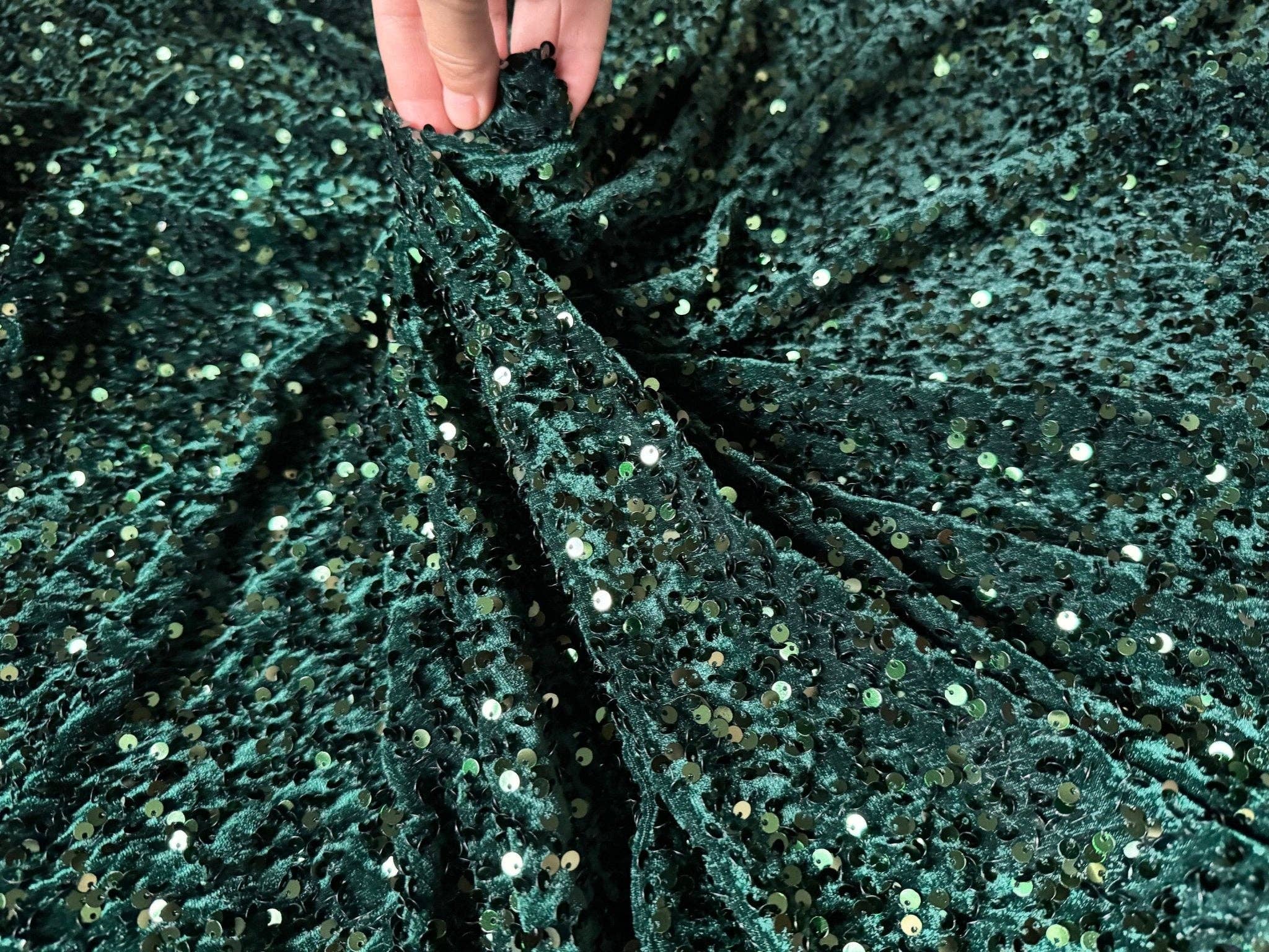 Our Sequin Velvet fabric is a masterpiece in itself, featuring sequins embroidered throughout the entire fabric. The heavily embellished stretch velvet base adds an extra layer of opulence, making it ideal for both decorative and apparel purposes. Uses for this versatile fabric are only limited by your imagination. Design stunning dresses and gowns that make a statement, elevate home decor and party decorations with a touch of sparkle, or craft eye-catching costumes and clothing accessories. The possibilities are endless – think table runners, backdrops, and much more! This durable velvet is not just a feast for the eyes but also a delight to touch, offering a luxurious feel that adds to the overall appeal.