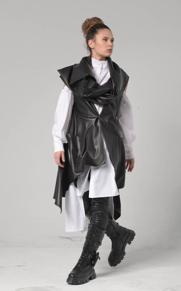 SKU: METC0098 Made in Bulgaria Aesthetic: Casual and Classic Care instructions: Dry clean only Fabric: Grey part- cashmere/ wool/ polyester; Black part- puffy black polyamide. Occasion: Everyday and Formal Season: Autumn/winter