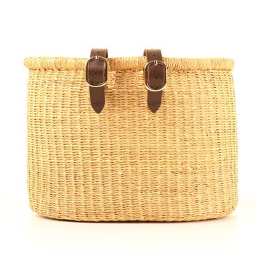 Beautifully simple, the BULI bicycle basket is an exquisite bike accessory. Designed in-house by The Basket Room, this unique woven creation can be attached to the front of your bike or to the rear as a chic pannier. The perfect basket for picking up flowers at the local market and days out pedalling through the countryside, our woven bicycle baskets are roomy enough inside to store books and stationery, a picnic blanket and lunch, or your gym kit and trainers. The BULI can also be secured to stairway bannisters, bathroom towel rails and cots as an aesthetic storage basket. Each bike basket is a work of art - taking up to three days to weave by hand - and is made from an indigenous crop known colloquially as ‘elephant grass’. Material: VETA VERA GRASS & LEATHER Dimensions approx: Standard: D25cm x W35cm x H25cm / D9" x W13" x H9 Two leather straps are included. Please note, as dyes are natural, colours may fade over time. If your basket gets wet, simply leave it to dry naturally and re-shape. When not in use, we recommend storing somewhere completely dry (and damp proof!)