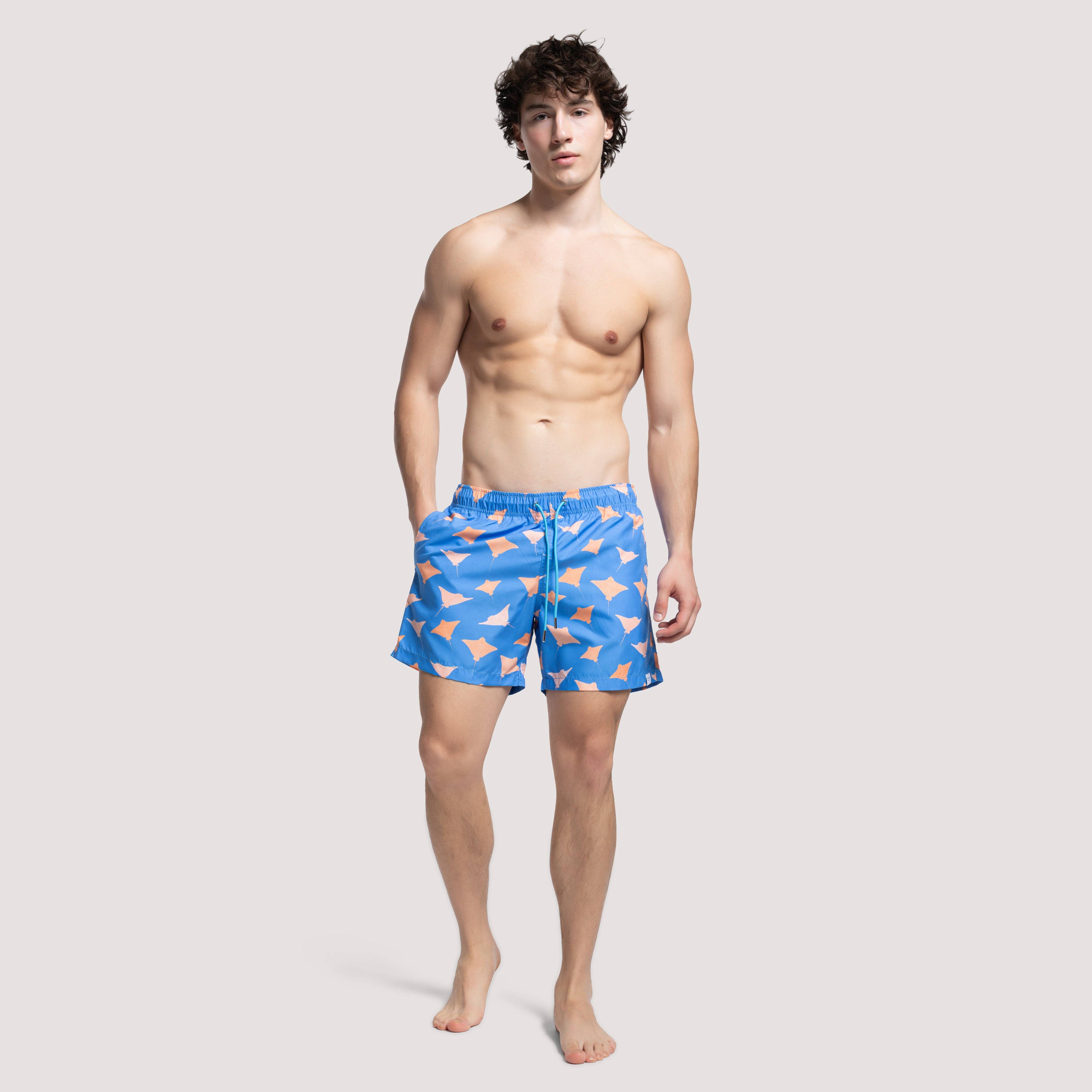 Perfect for blending in with your surroundings while still standing out in style, these men's swim trunks feature a unique camouflage print.