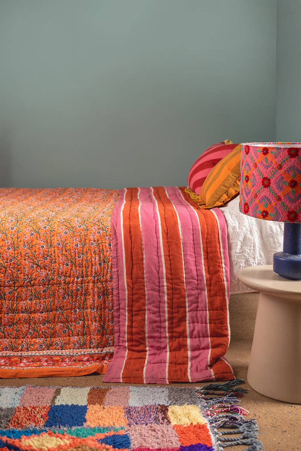 SIZE: This Premium Bedding comes in the 3 sizes: Twin – 68x90" Queen – 90x96" King – 110x96" *Shams Sold Separately* EXQUISITE BOHO DESIGN: This season add more fun and style to your bedroom with this Decorative Floral accent bedding. Inspired by an intriguing combination of boho motifs and blooms, the design features detailed pattern and traditional embroidery work. OPTIMAL COMFORT: Our Stylish multi print Quilt is made from exceptionally durable and sustainable cotton which is super soft and breathable. The filling is cotton and doubly brushed microfiber filling. Perfect for All Seasons, this trendy Quilt with rich looks and top-notch design is a must have piece for optimal softness and comfort. EASY CARE: This comfy bedspread set is also machine washable and super easy to maintain. You can machine washable in low cycle and tumble dry on gentle settings. Do not bleach.