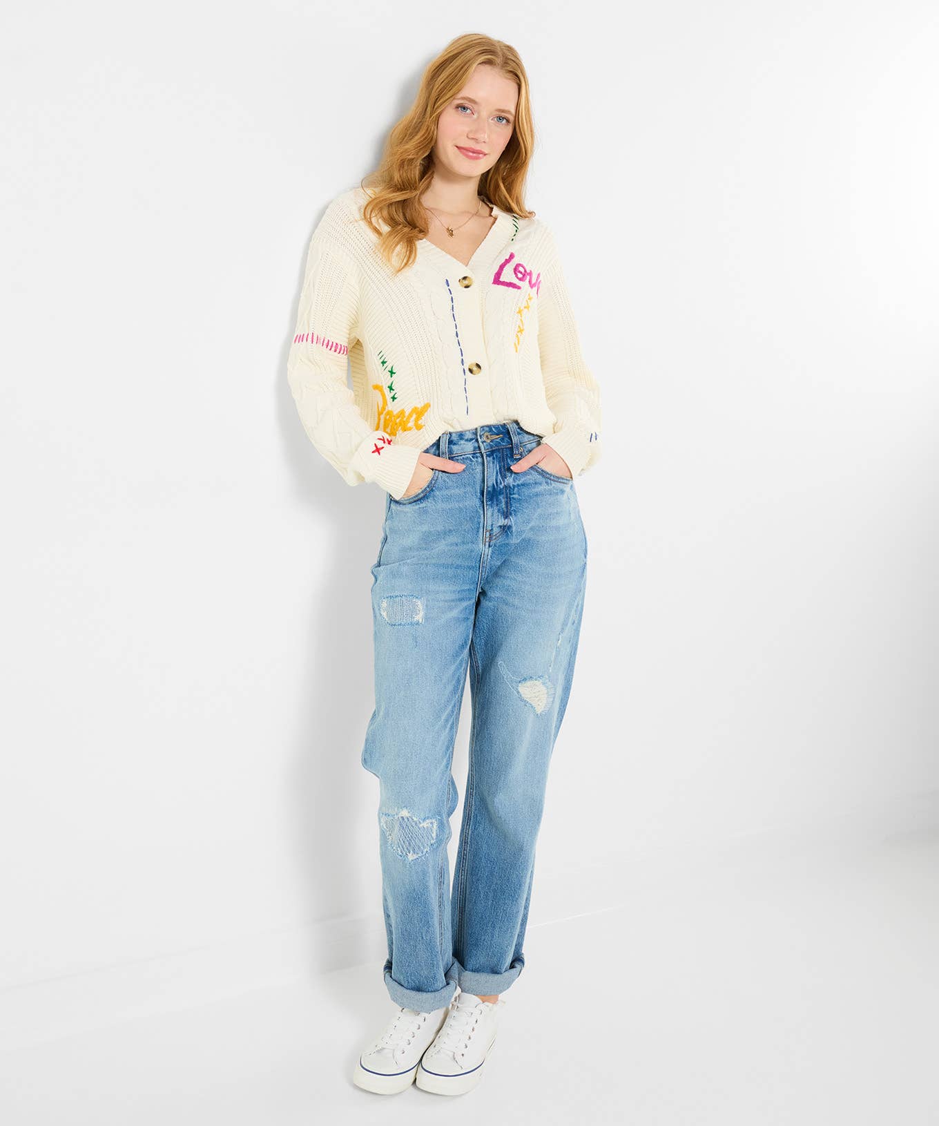 With the symbol of wealth represented by the diamond stitch, and the blackberry stitch reminding us of the power of nature, we like to think our Breaffy Ladies Aran Cardigan tells a story of the abundant landscapes of Ireland. Made with Handknit Merino wool, the Breaffy Ladies Aran Cardigan has been designed in Ireland with care using traditional methods gifted to us by our predecessors. This cardigan showcases stunning raglan sleeves for a smooth and flattering fit, which allows it to drape from the shoulder with ease. Added to that, a beautiful button detail gives the wearer the freedom to style how she chooses. Model Wears: * Height: 5ft 10inches * Wearing: S
