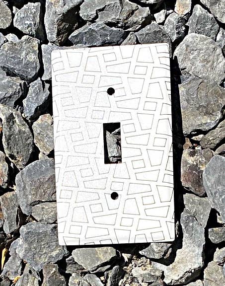 Made in the USA by a woman-owned business. Laser etched steel wall plate. All steel construction with powder coated finish Maxi size for extra-large wall coverage Rounded corners Soft pillow bevel Includes screw(s) in matching finish Product Depth (in.) 0.55 in Product Height (in.) 5.0 in Product Width (in.) 3.5 in