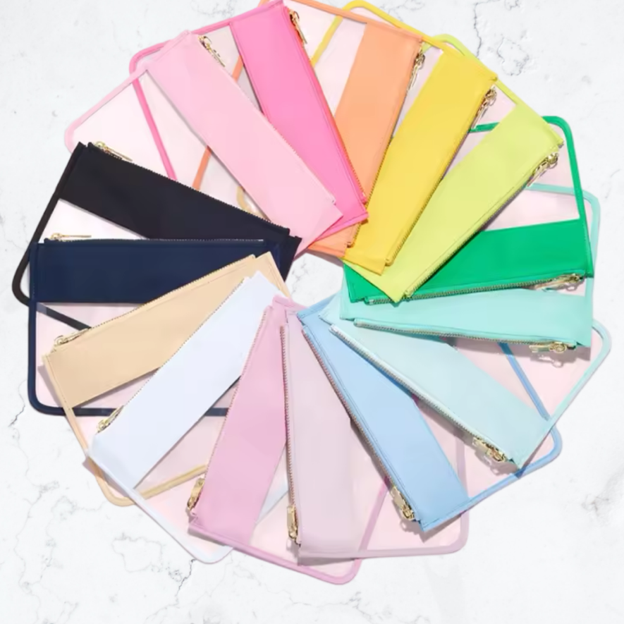 The Ultimate Pouch Your new favorite pouch—for you and for gifting! Stay stylishly organized: stash your earbuds, book, notebook, small devices, and more. I even fold up my jacket or sweater to use it as a lumbar pillow when traveling or sitting for long periods — it's that versatile! Our small-batch bags are handcrafted in Jaipur, India, and designed in New York by Jen Stock. Each one is lovingly made from 100% cotton patchwork fabric, handpicked by Jen, and features unique embroidery. Latest color-ways: Indigo or Turquoise Floral Print. These 2 are part of the Jen Stock & Bolsa Nova Handbag Collaboration * Zero waste: made from Post-Consumer Recycled (PCR) fabric — rescued and revived to keep beautiful materials out of landfills. Up-cycled. * One of a kind: Be kind. Mindful Construction: * Zip-top closure * Fully lined with a beautiful original block print interior * Two loops at the top for added function * Please note: These are fabric bags—please don't overstuff and make too heavy. Dimensions: * 10” L x 7” H x 3” W * Zip-top closure Optional Add-ons: * Detachable Wrist Strap: 8” 100% cotton block print ($15) and can also be used as a key chain! * Sterling Silver/Enamel Charms: Limited availability ($75 each—watch the video of some we have/had and ask please for pictures of available options!) Ordering Tips: * Since each pouch is unique, we are happy to text or FaceTime with you to help you select your perfect one. * Images may show pouches that are no longer available * Or ask for a FaceTime consultation to see more details. Car
