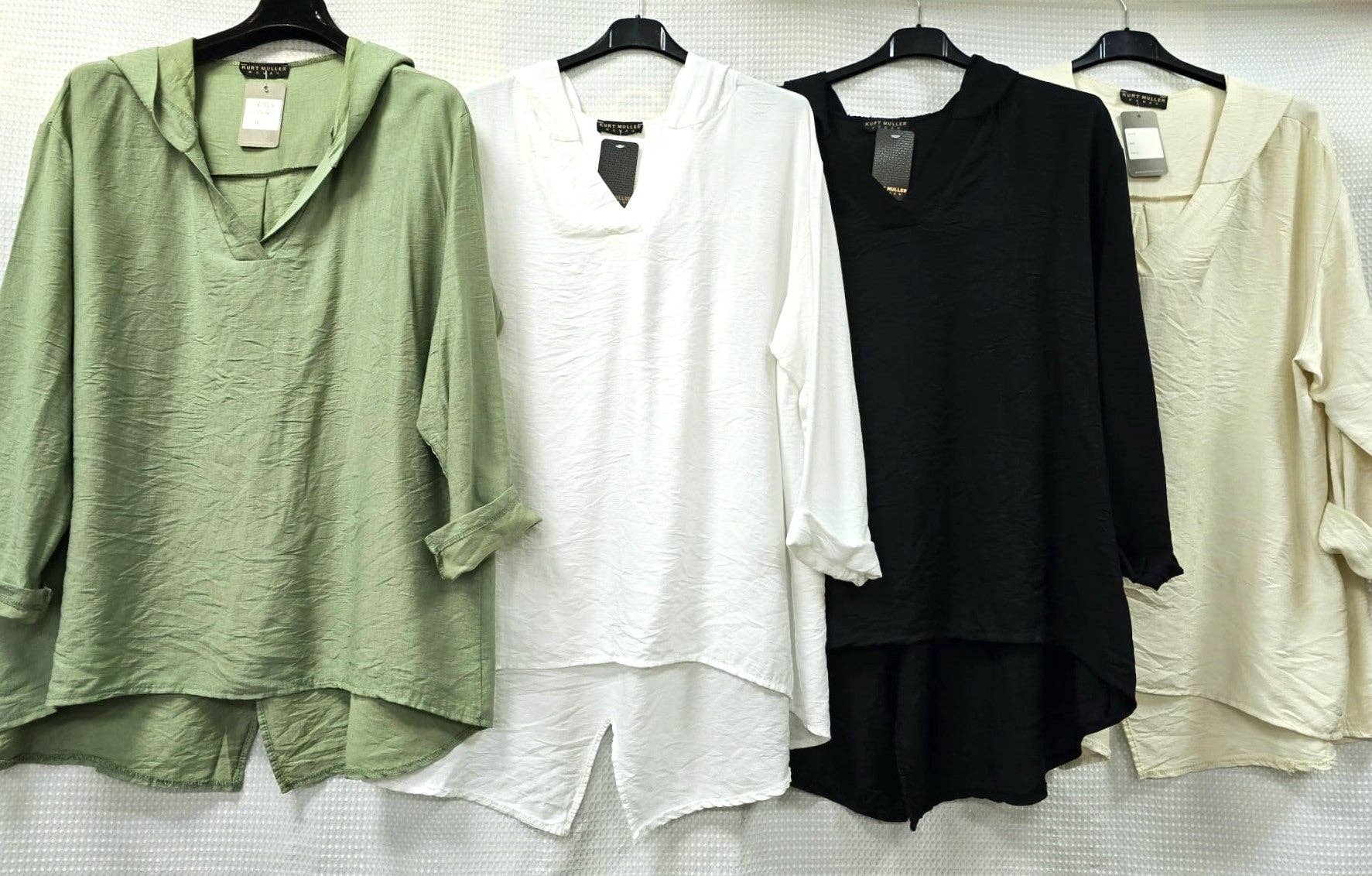 Our signature Lizzy top features poly blend which features luxurious softness with lightweight, wrinkle free comfort. This easy care fabric top is travel friendly, cooler than linen and other materials which makes your perfect ON THE GO wear. Lizzy top also features China collar neckline with 3/4" length sleeves with tab details. The fit is relaxed, flowy fit with slight high low. Imported Available in Regular Size: #LIZ-C0146