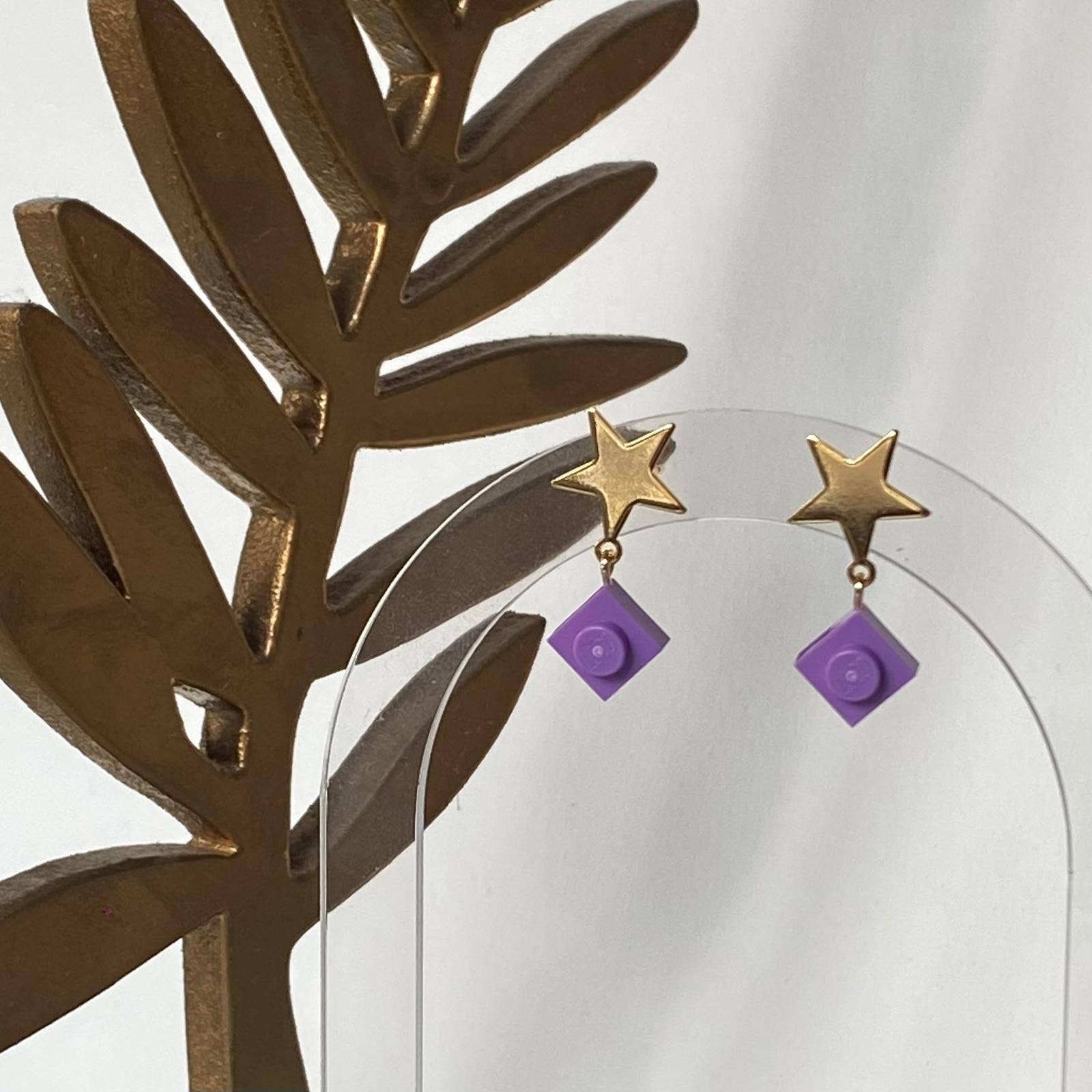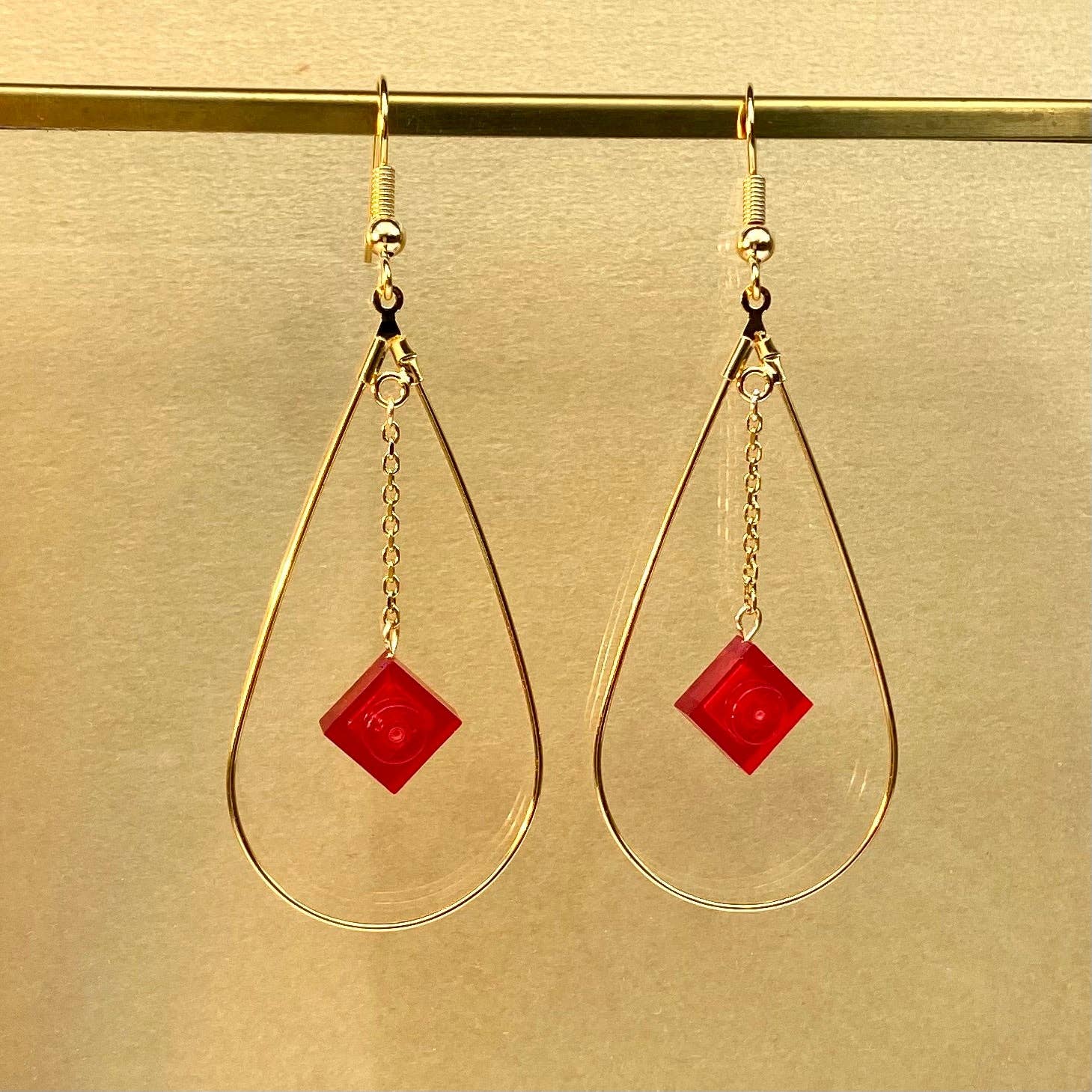 All in elegance! These earrings are a subtle play of solid and hollow squares. The brick is like set in the gold square. Earring height: 4cm Weight: 1g