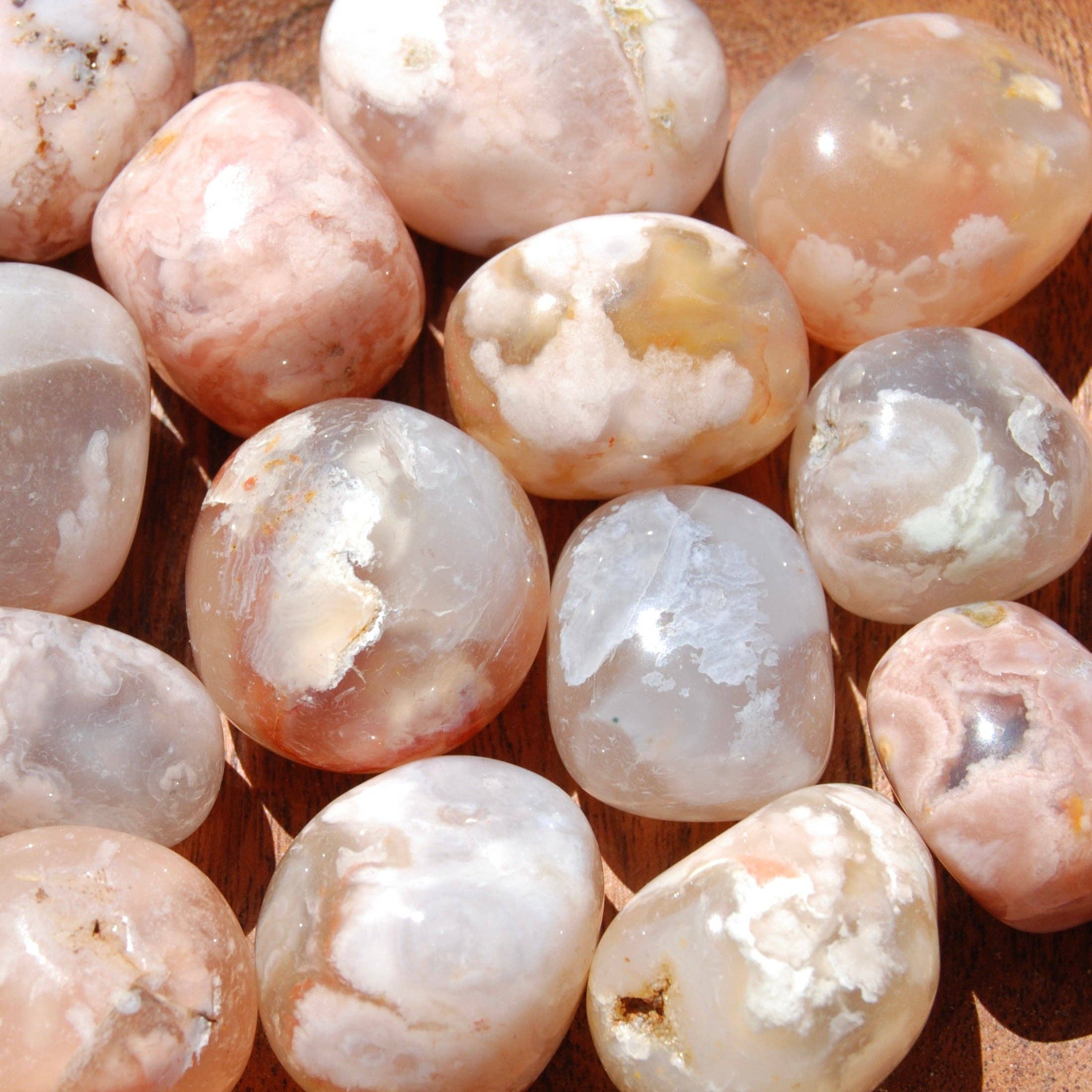 6pcs AAA Sakura Flower Agate Crystal Tumbled Stones, Medium