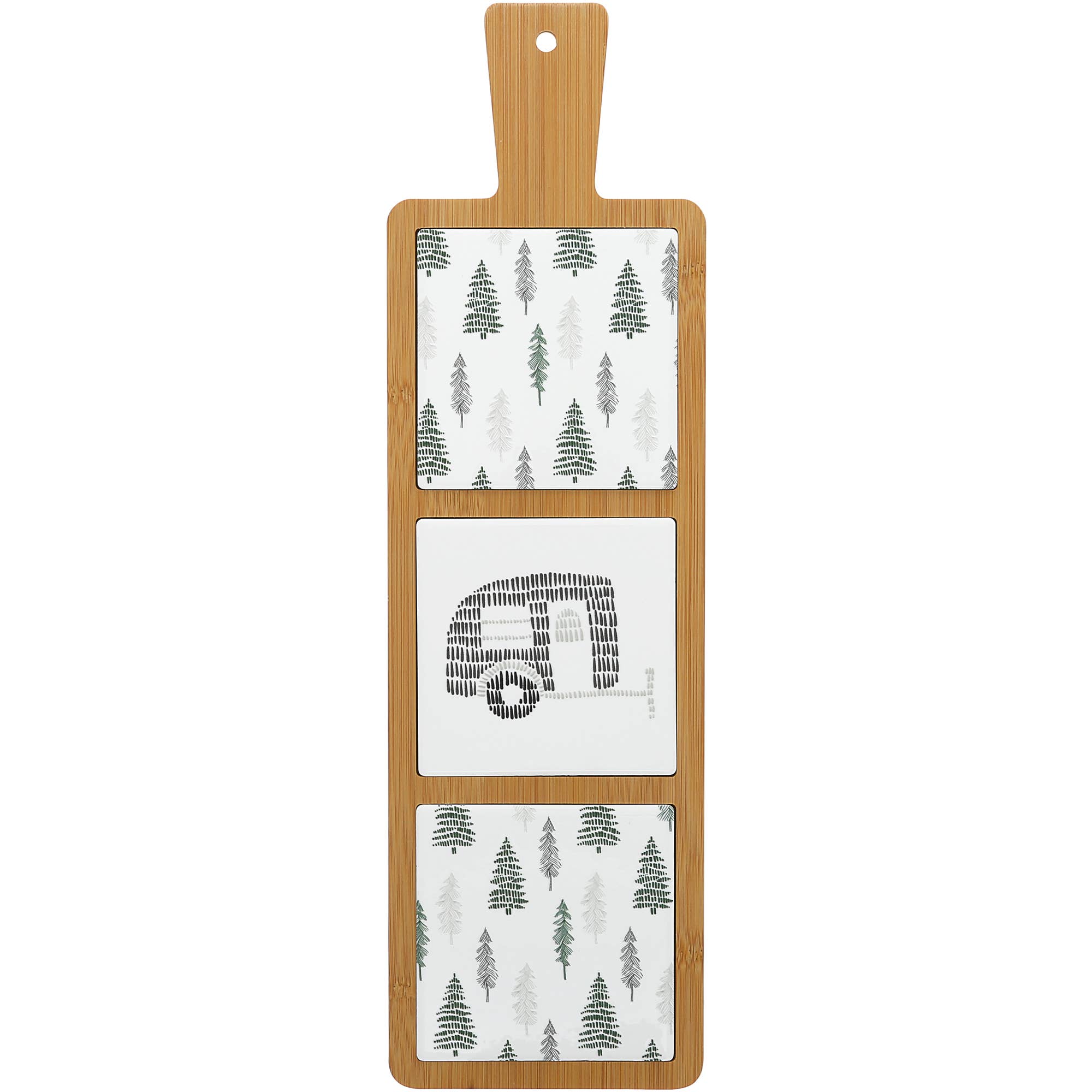 Modern-style stainless steel water bottle holds 32 oz of liquid inside its 4" wide & 9.25" tall walls. A black and white knotted nylon survival rope (paracord) carrying handle is comfortable for anyone, and the plastic clip makes it easy to attach to your bag. With the handle straight up, the drinkware stands 12" tall. The flip-open BPA-free plastic lid with a silicone stopper makes sipping and travel more enjoyable with a secure twist-on silicone ring closure to prevent leaks. The wrap-around matte green heat-transferred varying green tree and bush patterns encompass the exterior of the vessel's body. The laser-engraved "Livin' The Camp Life" sentiment and large bonfire are silver and placed in the middle-center of the front. This thermo keeps drinks cold for 12 hours and hot for 6 hours. Remove the handle before hand washing the bottle with the soft side of the sponge, with mild soap and warm water. Dry immediately. It is packaged in a die-cut box for safe shipping.