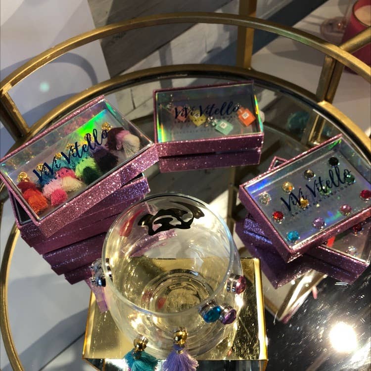 Our Tiered Tassel Cheers Charms are a festive addition to your next gathering. Made from a soft, cotton thread. Available in mixed colors. Features: * Size: 20mm each * Set of 6 * Reusable * Use Strong magnet to temporarily adhere to the glass * Wipe with damp cloth