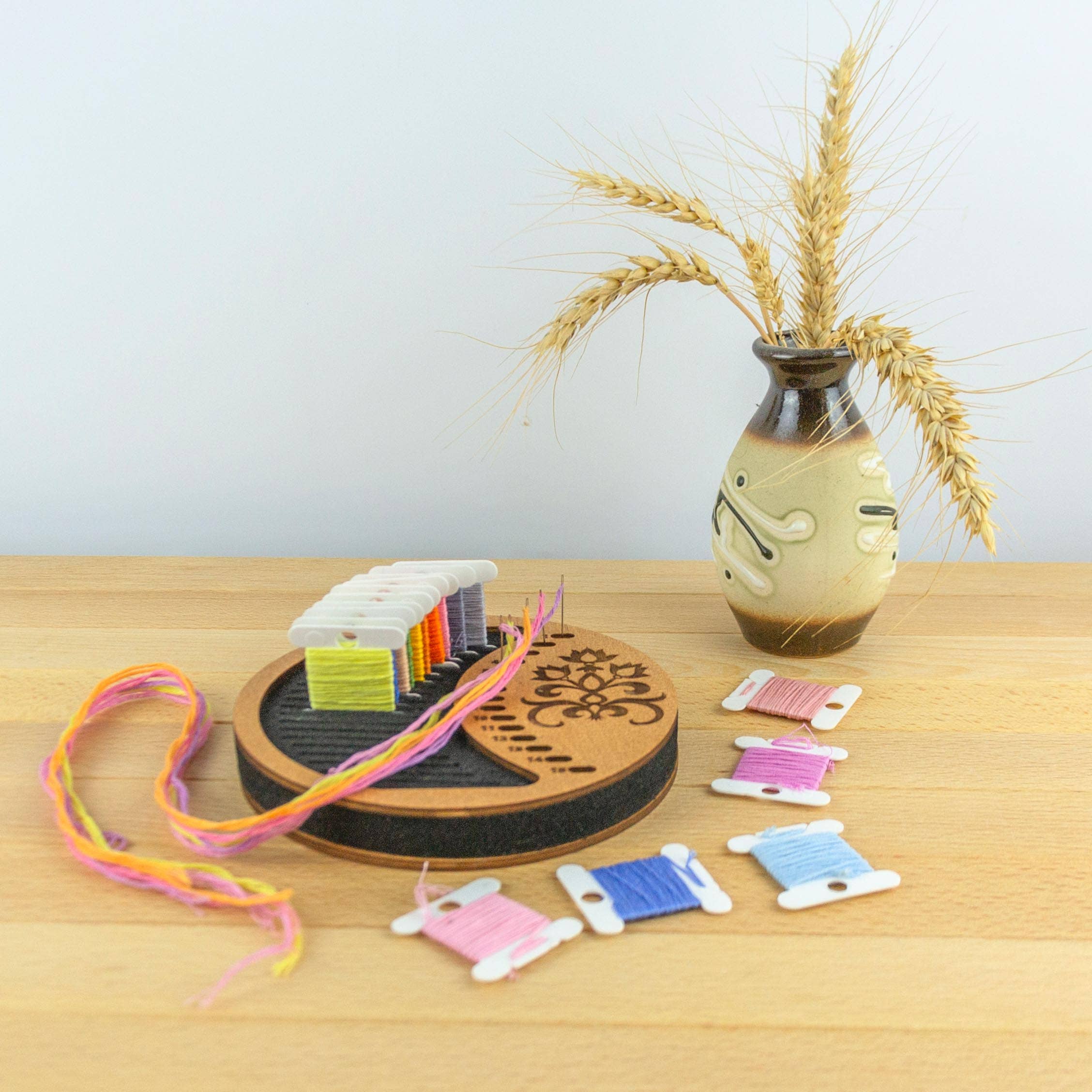 Keep your threads perfectly organized with this beautifully crafted embroidery thread board. Designed for stitchers who love both functionality and aesthetics, this tool helps you manage your floss with ease while adding a stylish touch to your workspace. Whether you’re working on a new pattern or prepping for a project, it makes thread selection fast and tangle-free. This organizer for floss threads features multiple slots to neatly separate and label your colors, streamlining your embroidery or cross-stitch process. Made from smooth, high-quality wood, it’s a durable and elegant wooden embroidery accessory that blends rustic charm with practical design. A must-have floss management tool for any needlework enthusiast. • Keeps threads separated, visible, and ready to use • Crafted from natural wood with a smooth finish • Lightweight and perfect for at-home or portable stitching • Ideal gift for embroidery and crafting lovers