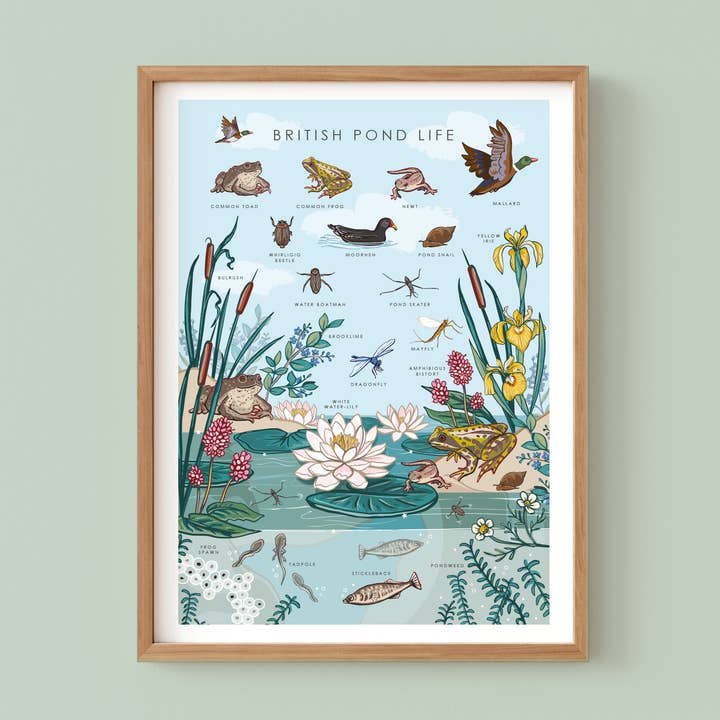 Unframed wall art print available in two sizes: A4 size - 297x210mm - printed with archival inks onto 190gsm matte archival paper and presented artist signed in a compostable cello with grey board backing card. Featuring British nature guide illustration of wild flowers by Angie Spurgeon
