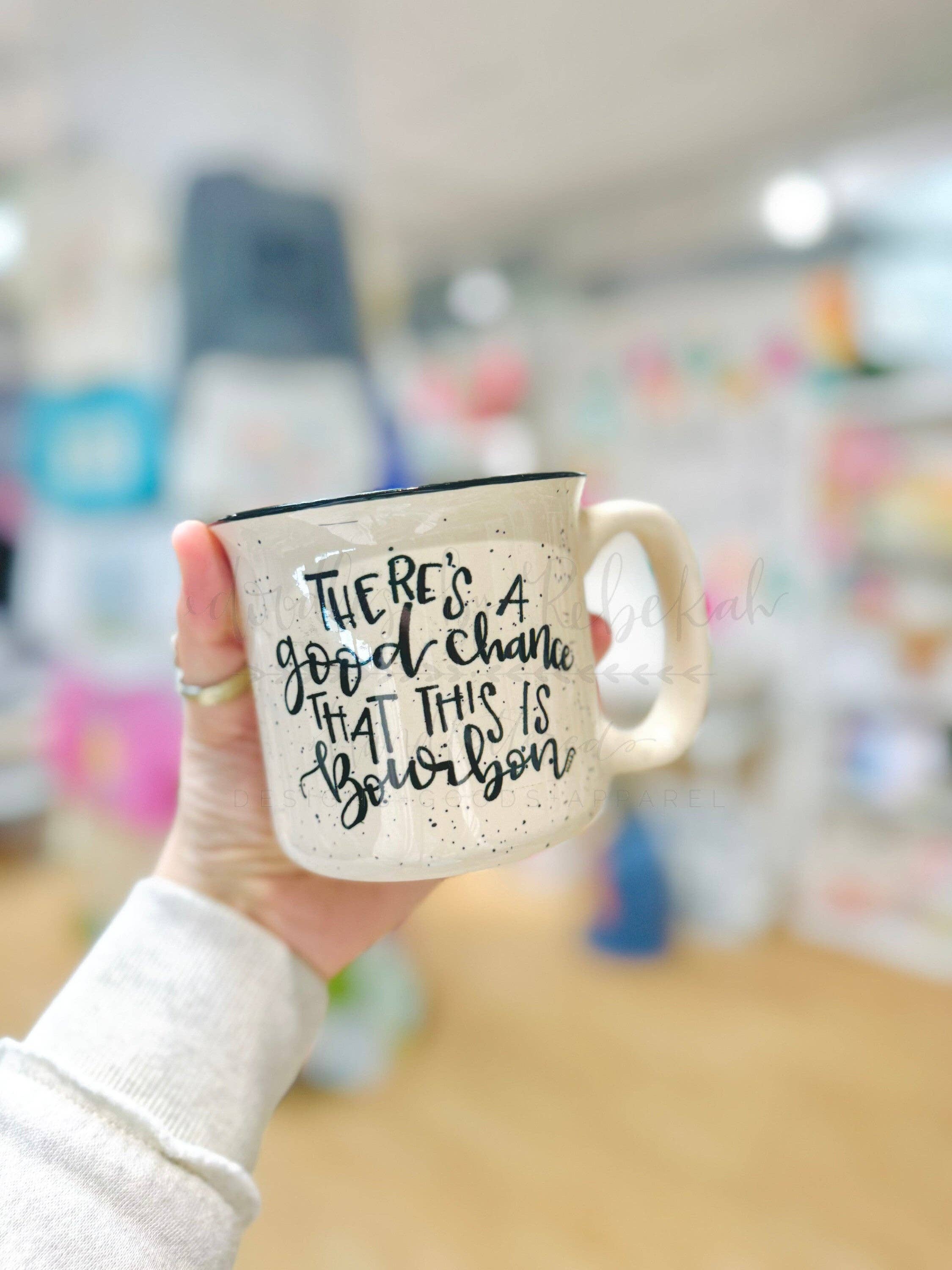 Oh! You like coffee too! (Are we besties now?!) Some info about your new favorite mug: - Can hold up to 13 oz of coffee, tea, bourbon, wine... -Made of ceramic! Heavy, feels good to hold, and is also dishwasher and microwave safe -Speckles on the mug may vary. -Single sided only print.