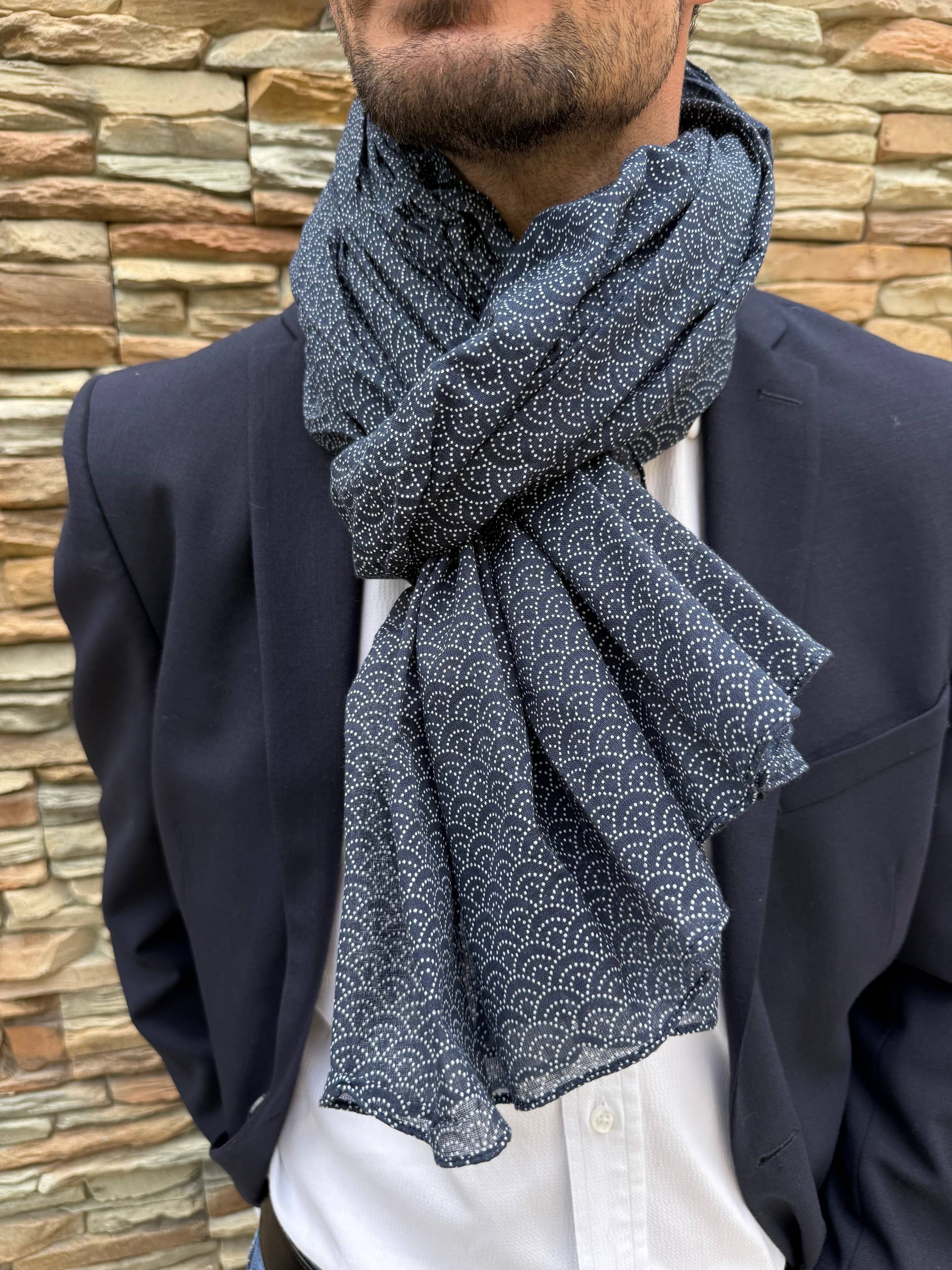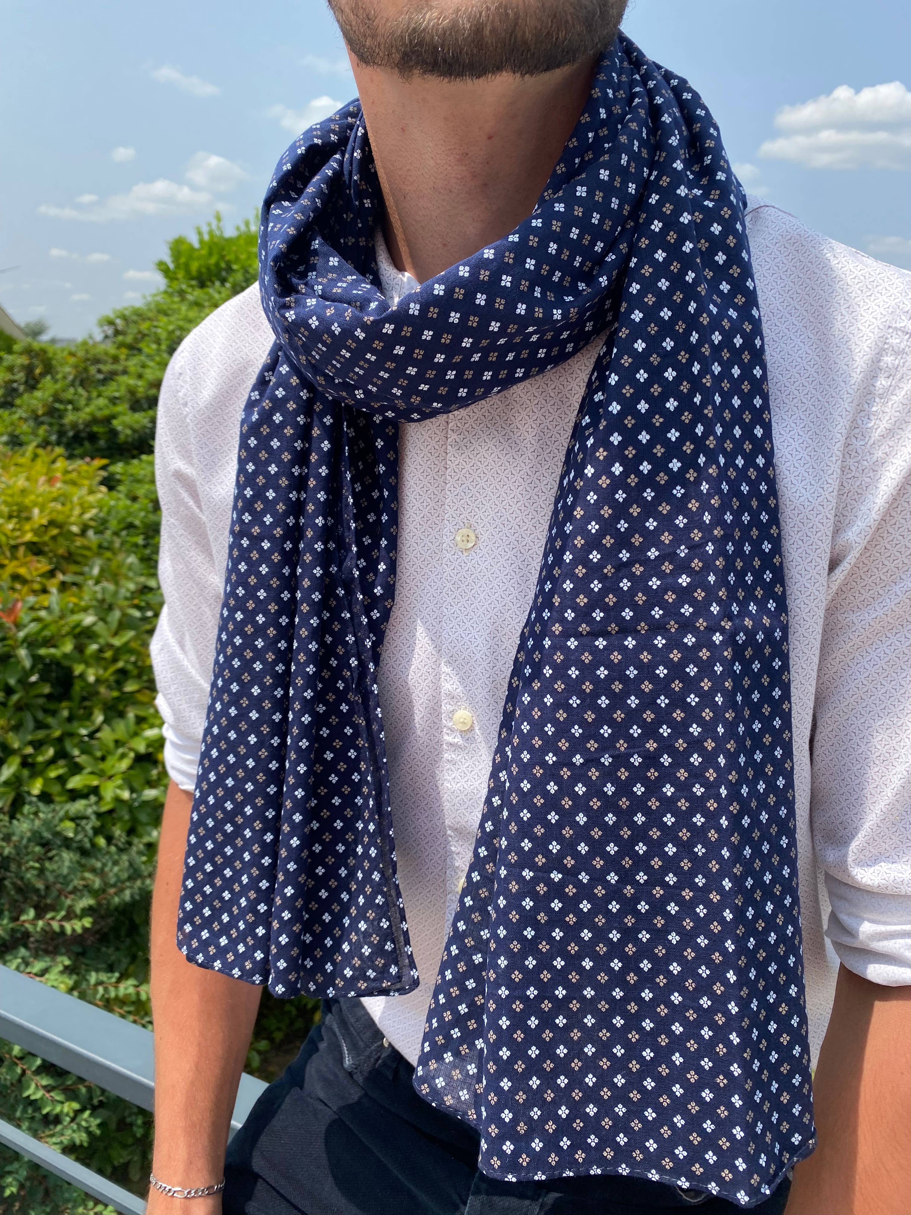 This 100% cotton scarf offers comfort and style for modern men. With its generous dimensions of 110 x 180 cm, it perfectly adapts to different uses: light scarf, shawl, or fashion accessory. This masculine model features a chic and timeless pattern, ideal for completing casual or elegant outfits. Features: • Composition: 100% cotton • Size: 110 x 180 cm • Manufacturing: Made in India • Style: Chic, timeless, and casual • Soft and comfortable • Designed for a masculine style A perfect accessory for customers seeking elegance and practicality. Scarf / Bandana / scarf / Father's Day gift / Mother's Day gift / western bandana / motorcycle scarf / men's accessory / scarf / cotton scarf / cotton scarf / bandana scarf / women's scarf / pareo / Valentine's Day gift / cotton scarf / liberty print / men's scarf / unisex / men's scarf