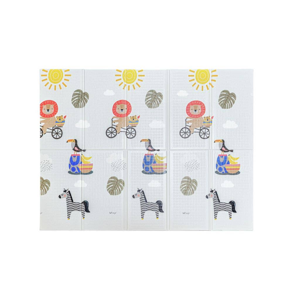 Our reversible and foldable foam play mat, 70 “ x 59”, was designed by parents for parents. We all want what’s best for our little ones, and JumpOff Jo has aimed to provide that with this large, double-sided, and portable play mat. On either side you’ll find a whimsical, modern original design! With two designs, your wee one will have double the fun. The variety of colors will fit effortlessly into any playroom or nursery, encouraging the spirit of imaginative play and stimulating your child’s developing vision. The thick, soft padding is waterproof to prevent stains and odors, and the raised-grid pattern offers good grip to help prevent slips.