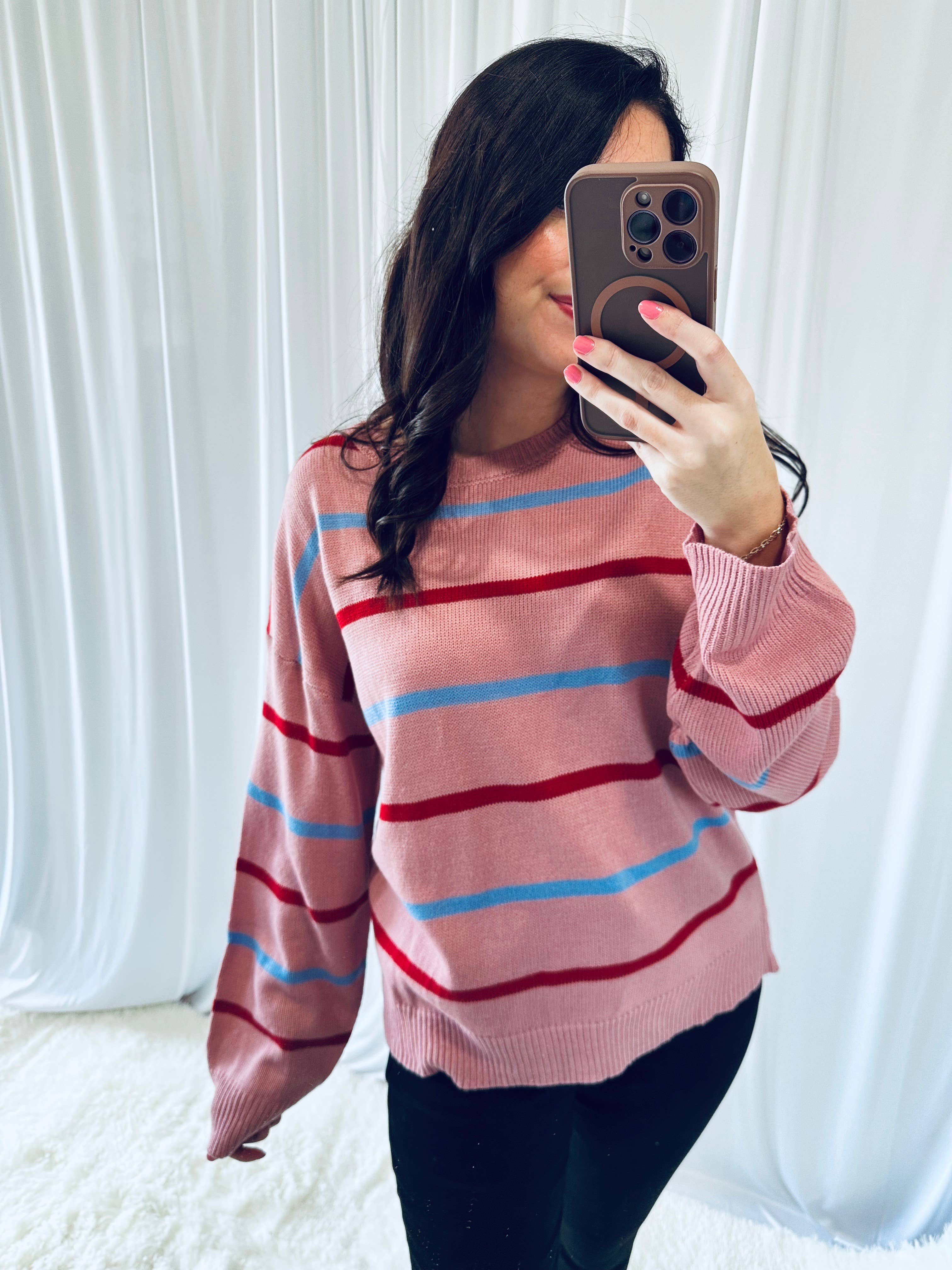Casual Striped Loose Fit Pullover Sweater for Women