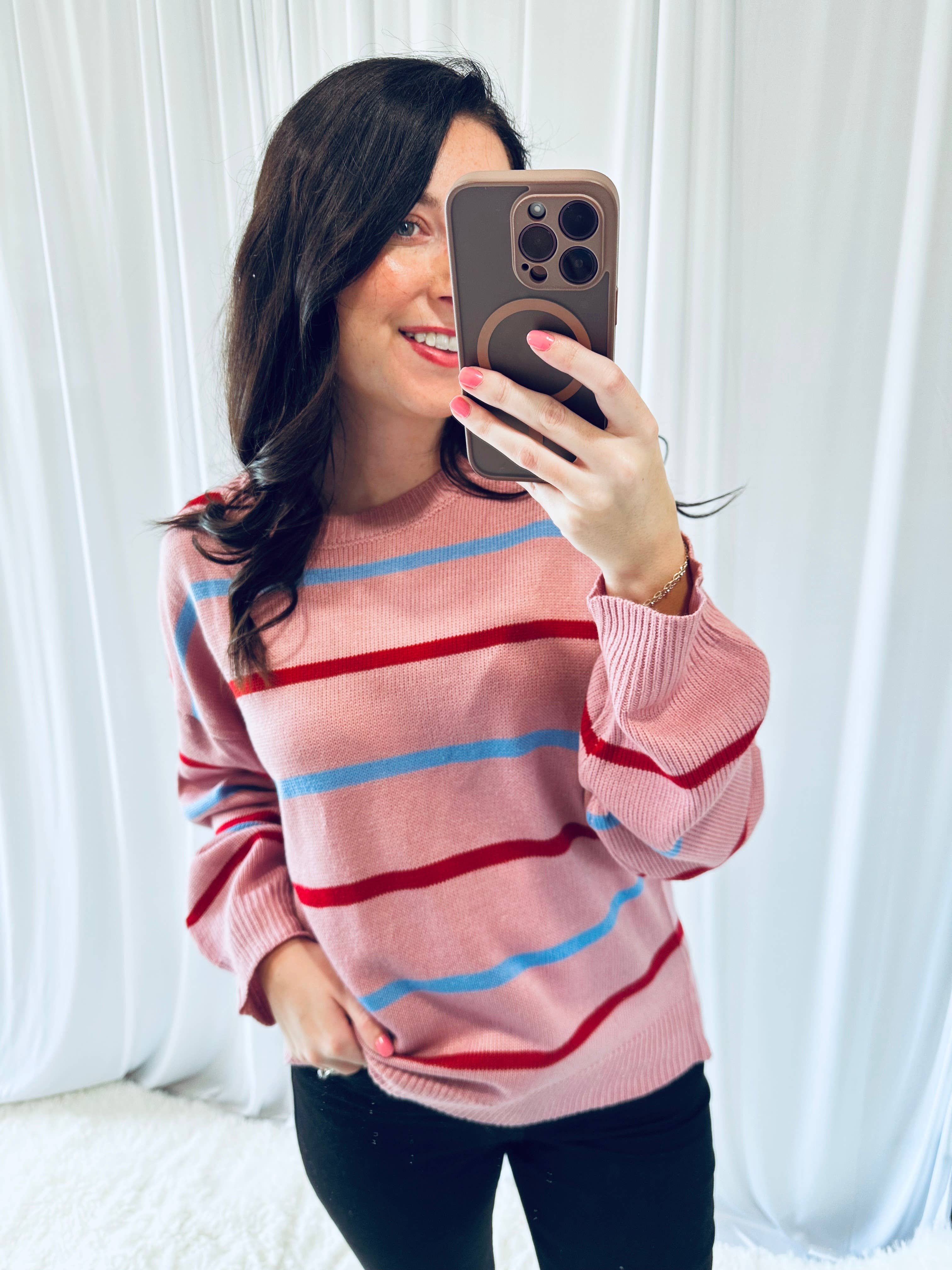 * Trendy Striped Design – Features chic color block stripes in beige, apricot, pink, and gray tones, perfect for fall fashion and everyday wear. * Soft & Breathable Fabric – Made of acrylic and cotton blend, mid-weight knit provides comfort, warmth, and breathability for cooler seasons. * Relaxed Loose Fit – Designed with a round neck, long sleeves, and a slouchy silhouette for effortless layering and a laid-back streetwear vibe. * Versatile Styling – Pairs easily with jeans, skirts, or leggings for casual outings, office wear, or cozy weekends at home. * Seasonal Must-Have – Ideal for fall 2025 collections, wholesale friendly for U.S. and European markets, true to size with S–XL options. Brand labels are not included by default. If needed, please add them via this link ($0.50/pc): https://www.faire.com/product/p_mbyt838sy8
