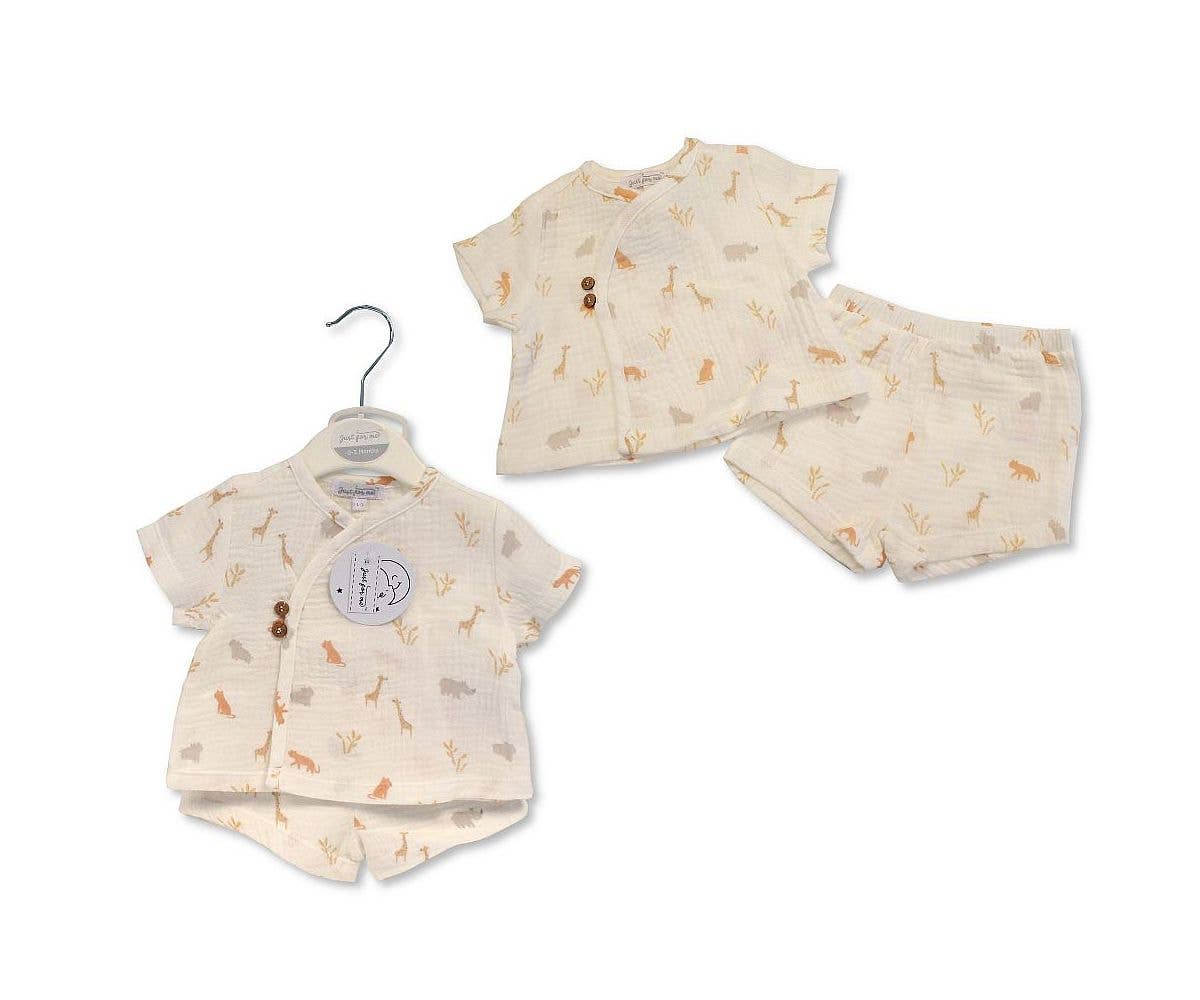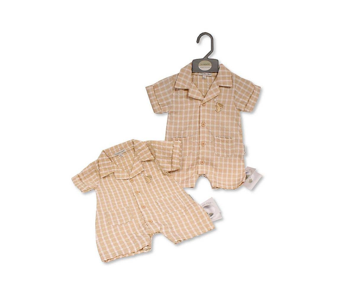 Baby Boys Cotton Romper - Safari Style Number: Bis-2120-6247 Material: 100% High Twist Cotton Colour: Cream Sizes: NB, 0-3, 3-6, 6-9 Months (Packing Ratio 1-2-2-1 for wholesale pack of 6)