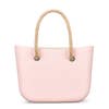 This baby pink beach bag is both fun and feminine. Crafted in waterproof EVA, it’s the perfect vacation accessory - sand and water just glide off its rubberised finish. Roomy enough for all your seaside essentials, with a removable, washable canvas pouch for safe storage. Broad detachable rope handles add a fun nautical feel, and are long enough to wear over the shoulder. This piece is great for adding a touch of soft colour to our solid swimsuits or playful prints. Finished with signature Mavele logo embossing. Colour: Baby Pink