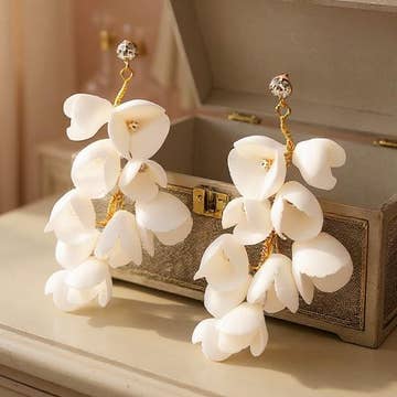 Mooie statement bloem oorbellen van resin. De oorstekers zijn van stainless steel. Lengte: ongeveer 5,5 cm. Verkrijgbaar in pearl white en pink/purple/gold.