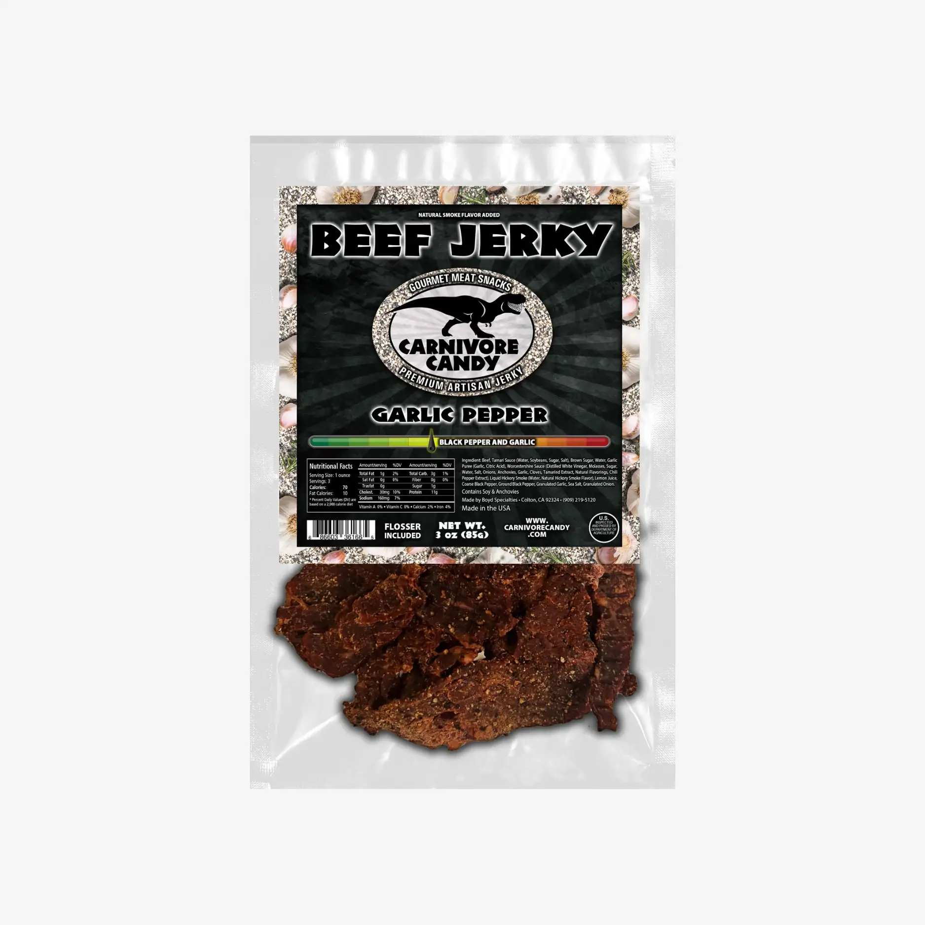 Carnivore Candy Garlic Pepper Beef Jerky 3oz.