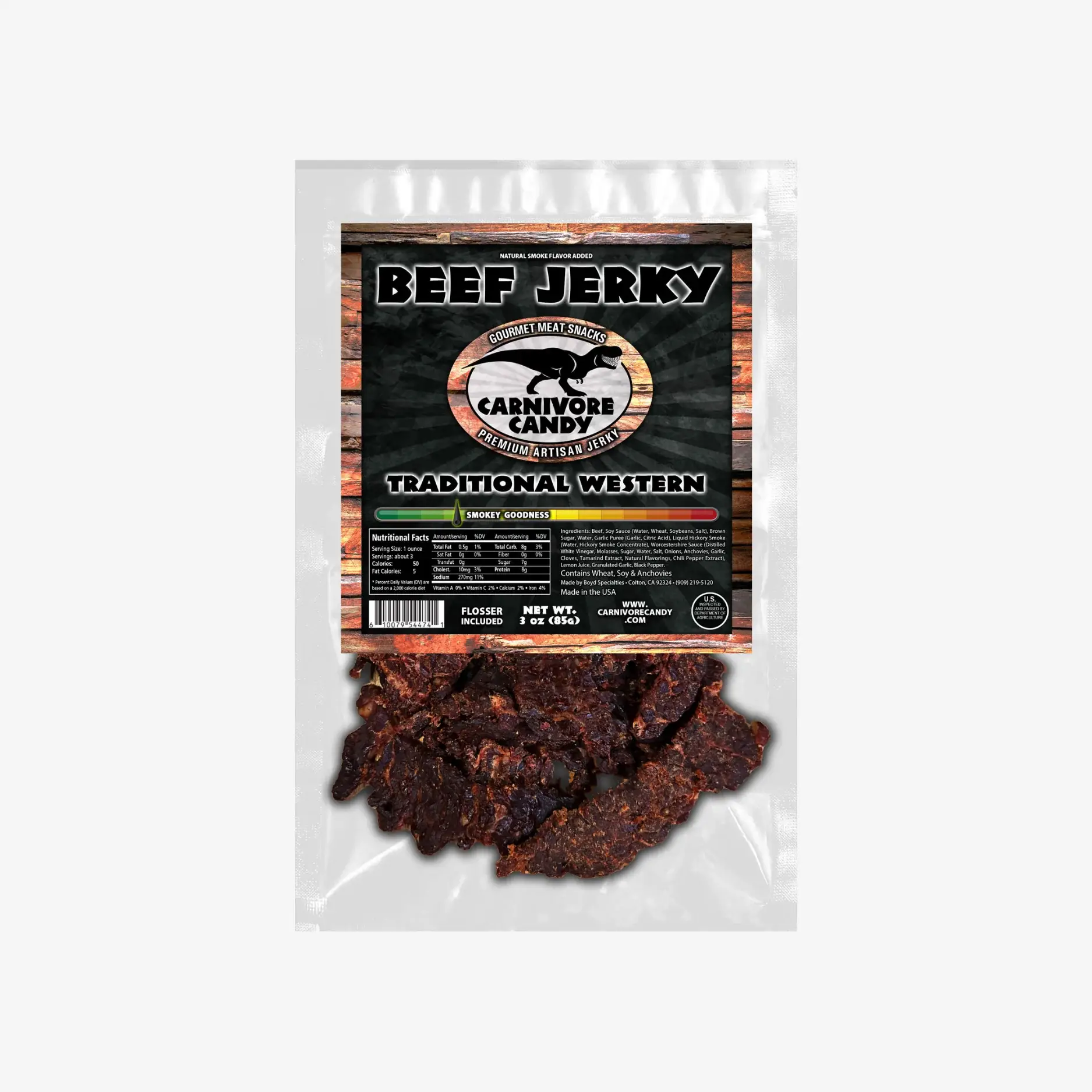 Like a juicy pepper steak, sprinkled with large kernels of black pepper, our Peppercorn Jerky had been developed to evolve in levels of different flavors that build and culminate into a fantastic chewing experience. The flavor starts as a smoky, traditional jerky and then the black pepper begins to let you know that this jerky has bite. With a slightly sweet pepper heat, the flavor escalates until the spice gives a new dimension to this flavor.
