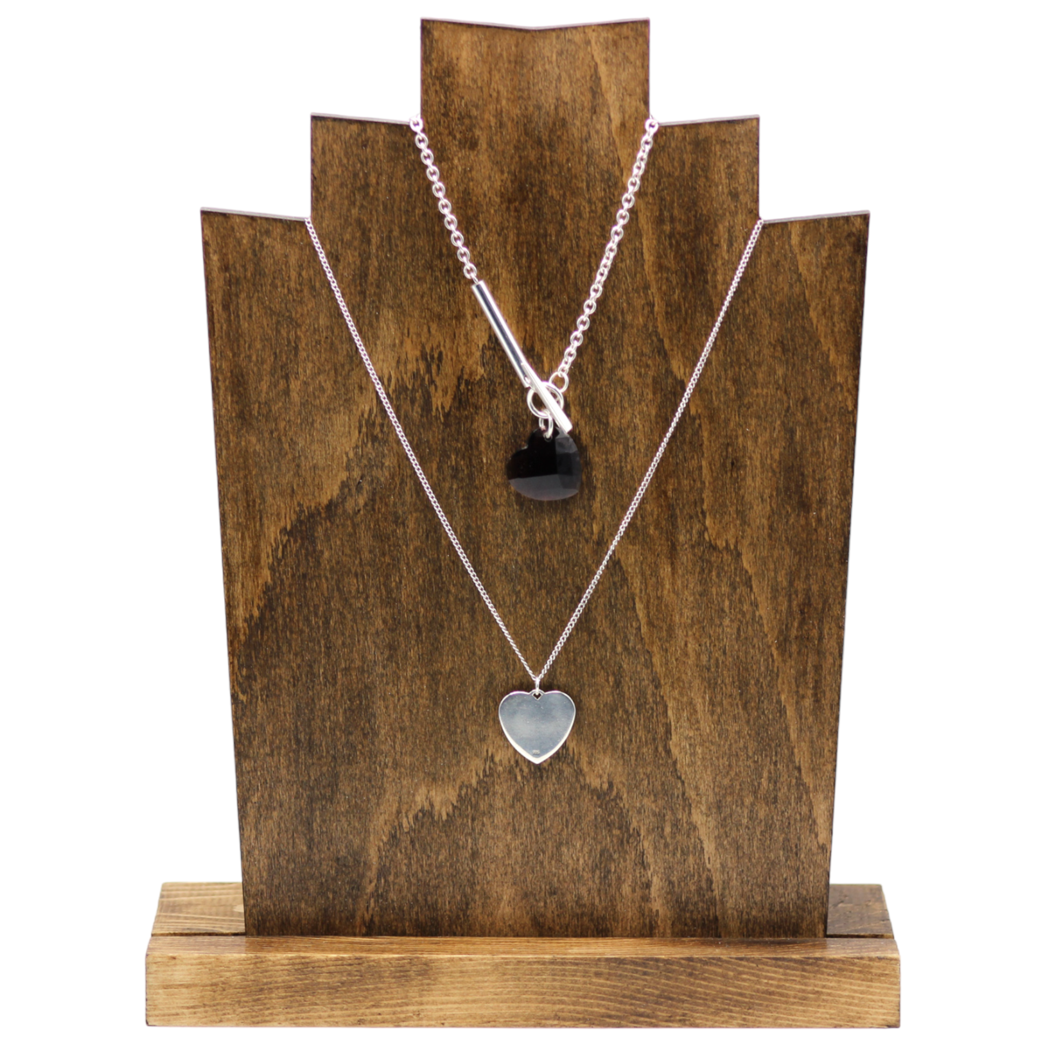 Showcase your jewelry with our stunning new natural wood and faux leather jewelry display! Crafted from premium quality wood, this display combines modern design with natural beauty, making it the perfect choice for showcasing a variety of bracelets, necklaces, rings, and earrings. Available in white or black, you can display a variety of looks together in an elegant way perfect for increasing your in-person sales! • High-Quality Wood: Made from durable, high-quality wood, this display is designed to last, offering a sturdy and reliable platform for your precious jewelry. • Smooth Finish: The finely polished surface highlights the natural grain of the wood, providing a sophisticated and clean look that complements any shop décor. Approx. Weight: 1326 grams Approx. Width: 15.5" Approx. Depth: 9" Approx. Height: 7"(Side Displays) / 9"(Center Display)