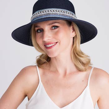 This Macho Unisex Cowboy Hat boasts a distinctive fusion of fashion and functionality. Its pliable wire rim, adjustable hat band, and hand woven construction of natural raffia fibers result in a truly bespoke fit. And don't forget its hip yet gender-neutral design - it's definitely making a fashion statement. Approximately 3.5" Brim. Contents: raffia palm fiber. Made in Madagascar.