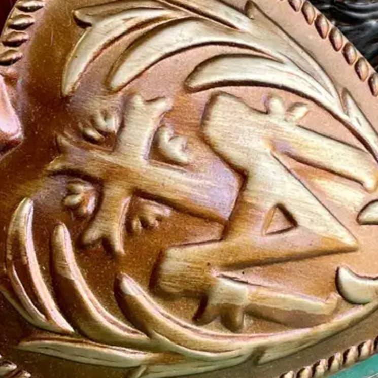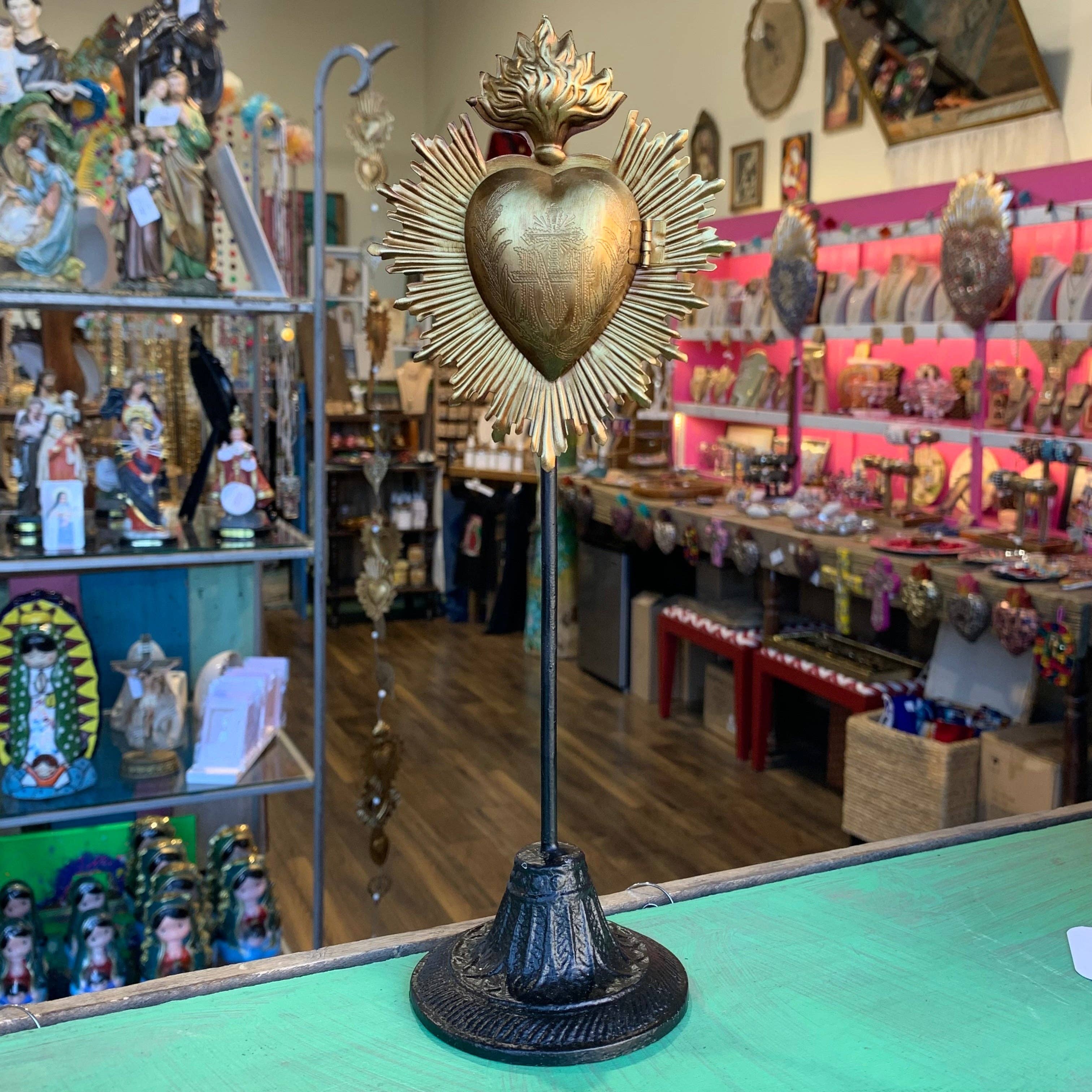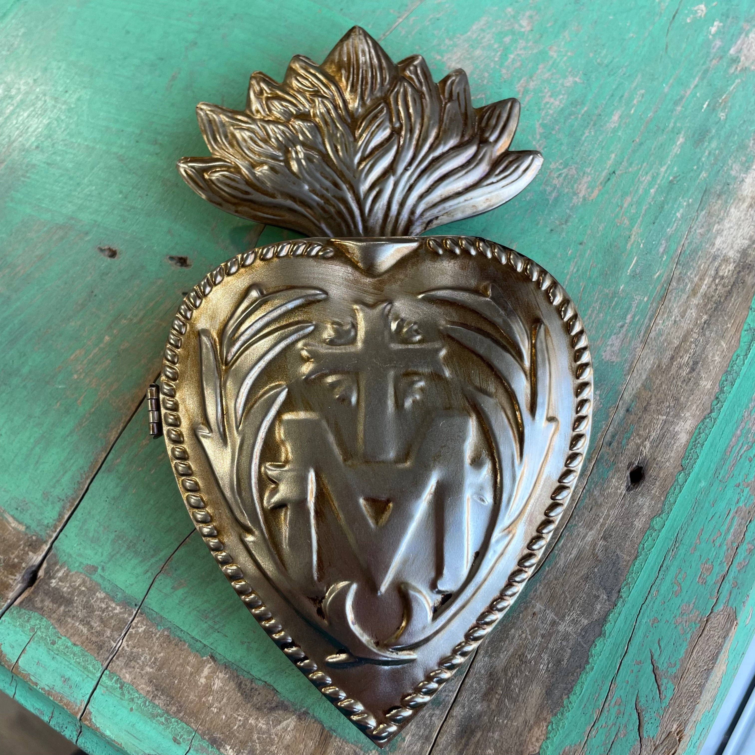 5.5" X 2.4" X 1.1" metal Flaming Sacred Heart Holy Water Holder. Made in India.
