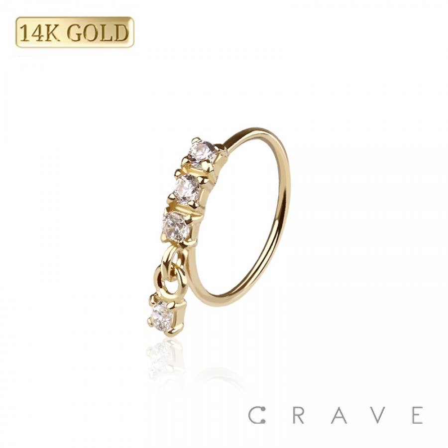 14 KARAT GOLD SIDE GEM PAVED FRONT-HINGED SEGMENT RING FOR SEPTUM, HELIX, TRAGUS, CAPTIVE Product code: KTRS002 Thickness: 16GA (1.2MM) to 20GA(0.8MM) Length: 1/4"(6MM) to 3/8" (10MM)